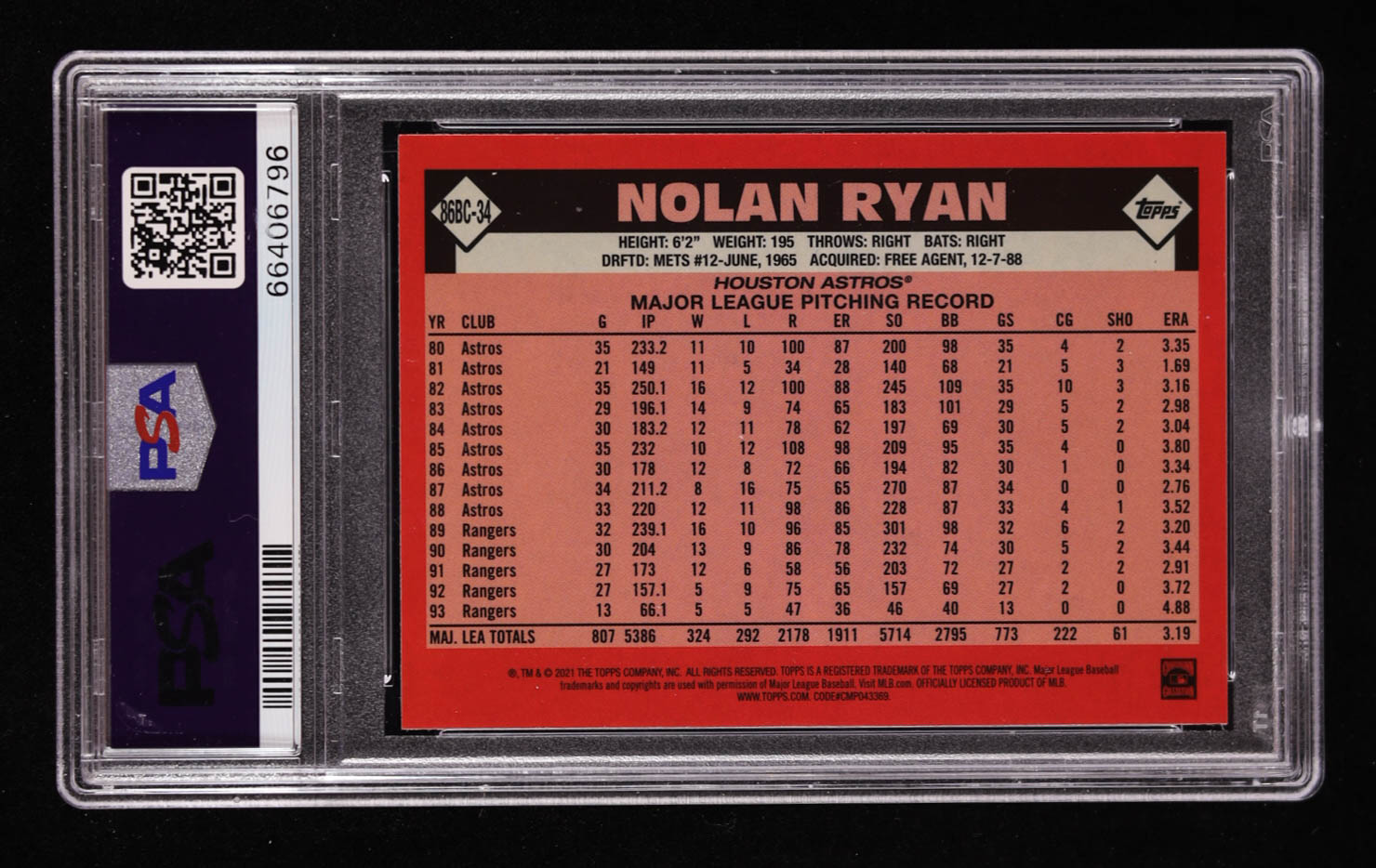 Nolan Ryan 2021 Topps '86 Topps Silver Pack Chrome #86BC34 (PSA 10)
