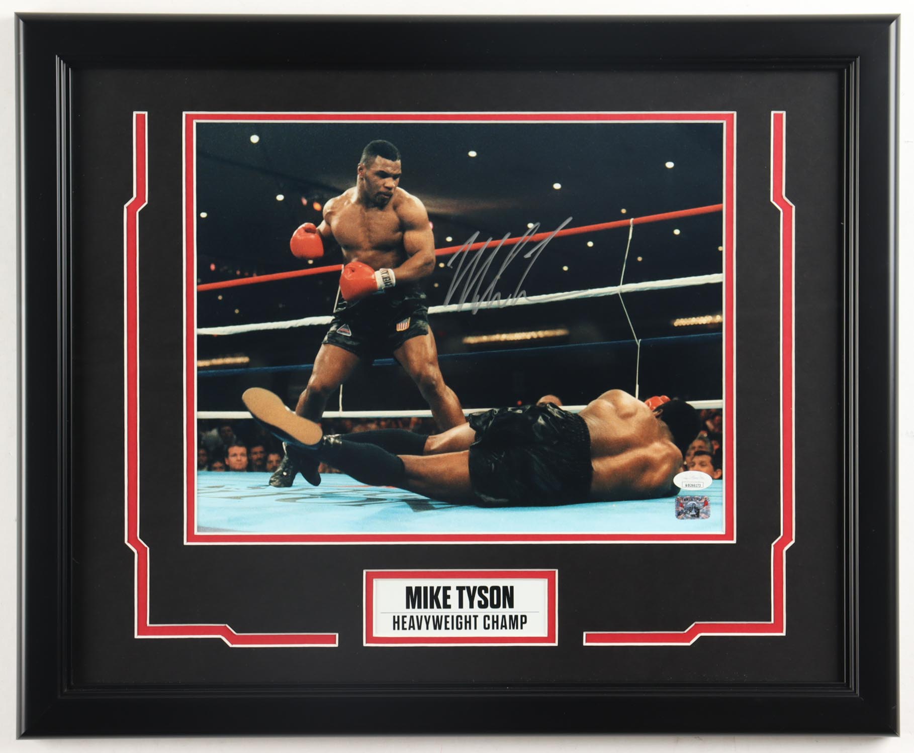 Custom frame measures approximately 18.5" x 22" in size and features a photo that has been hand-signed by Mike Tyson (HOF).