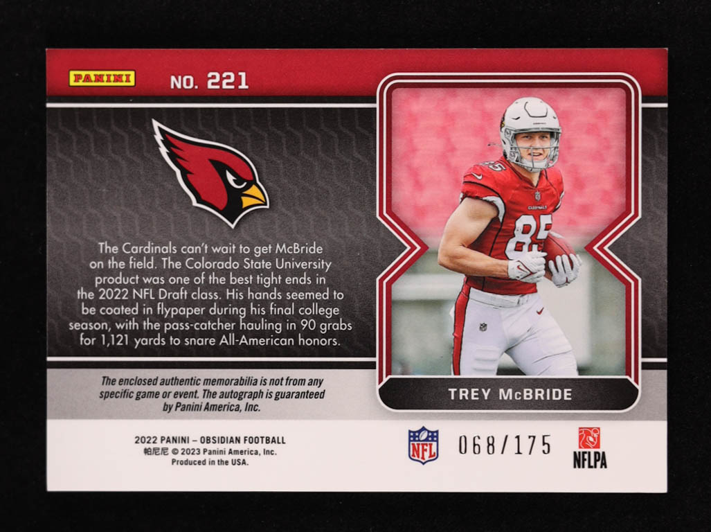 Trey McBride 2022 Panini Obsidian #221 Jersey Autograph #068/175 RC