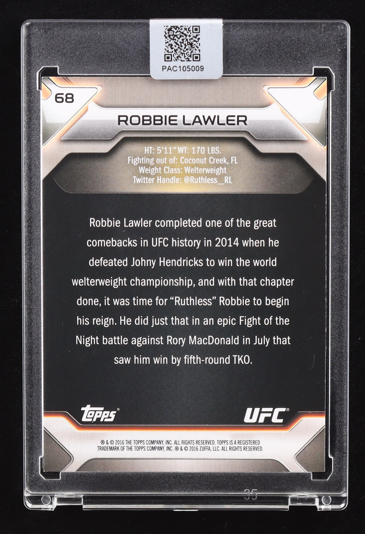 Robbie Lawler Signed 2016 Topps UFC Knockout #68 (PA)