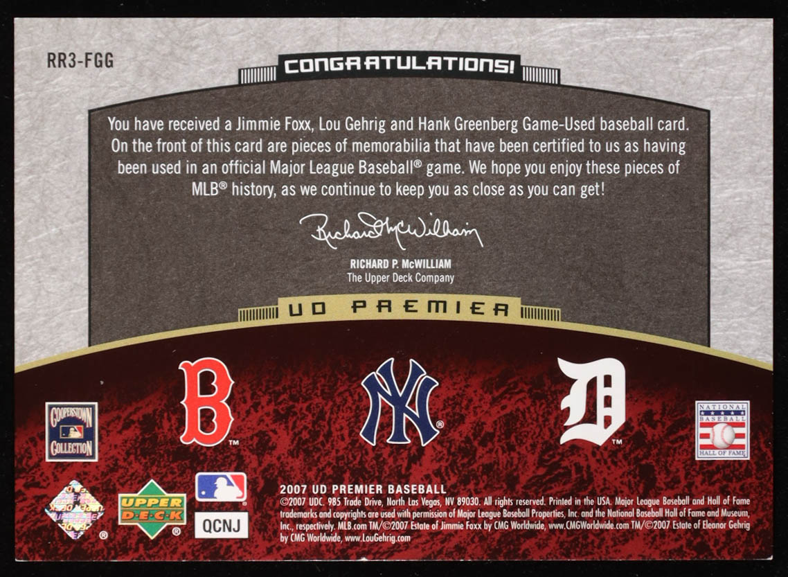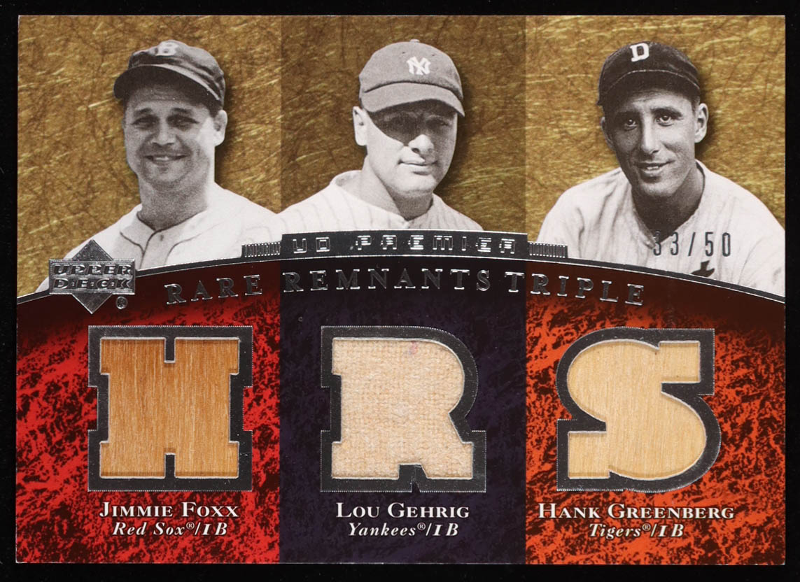 Jimmie Foxx / Lou Gehrig / Hank Greenberg 2007 Upper Deck Premier Rare Remnants Triple #FGG #33/50