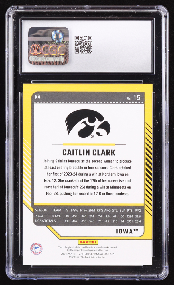 Caitlin Clark 2024 Panini Caitlin Clark Collection Donruss Dot #15 RC (CGC 10)