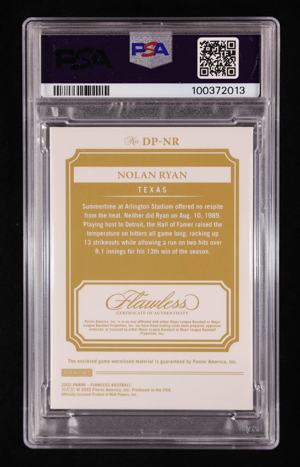 Nolan Ryan 2022 Panini Flawless Dual Patches #37 #01/15 (PSA 9)