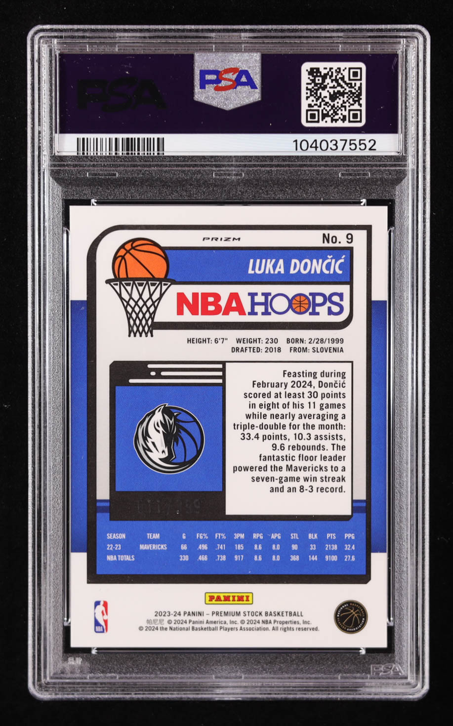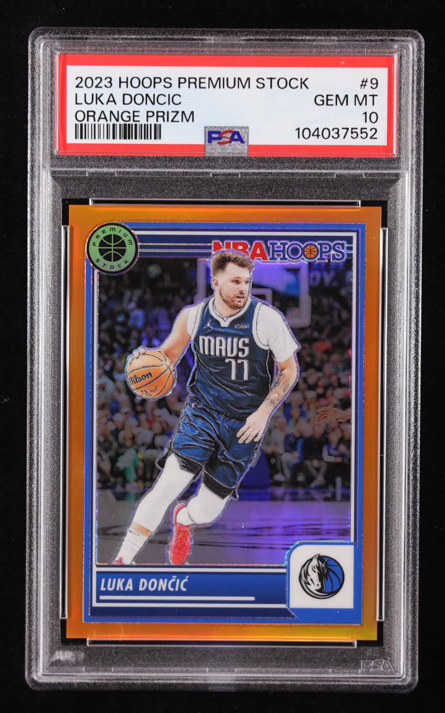 Luka Doncic 2023 Hoops Premium Stock Orange Prizm #9 #11/299 (PSA 10)