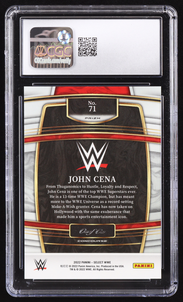 John Cena 2022 Select WWE Prizms Black and Gold #71 #1/1 (CGC 9)