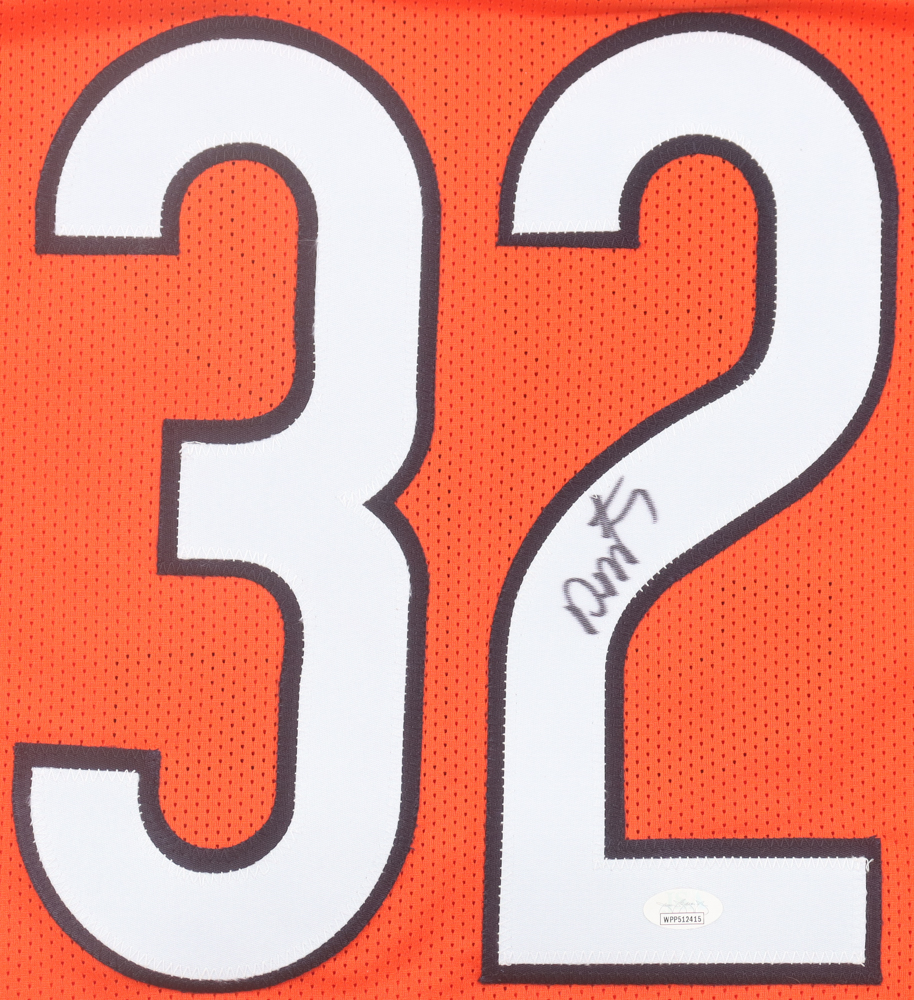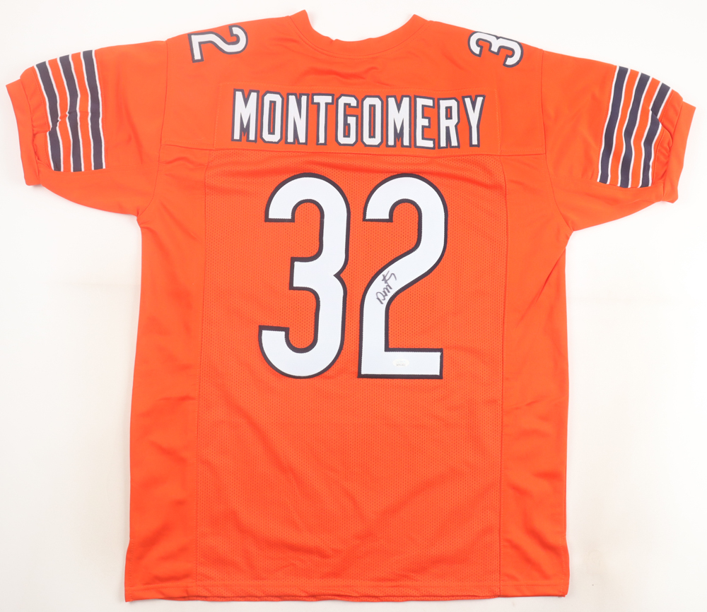 Custom football jersey. Everything sewn on, size XL. Hand-signed by David Montgomery.