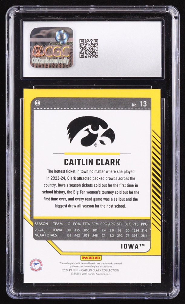 Caitlin Clark 2024 Panini Caitlin Clark Collection Donruss #13 RC (CGC 10)