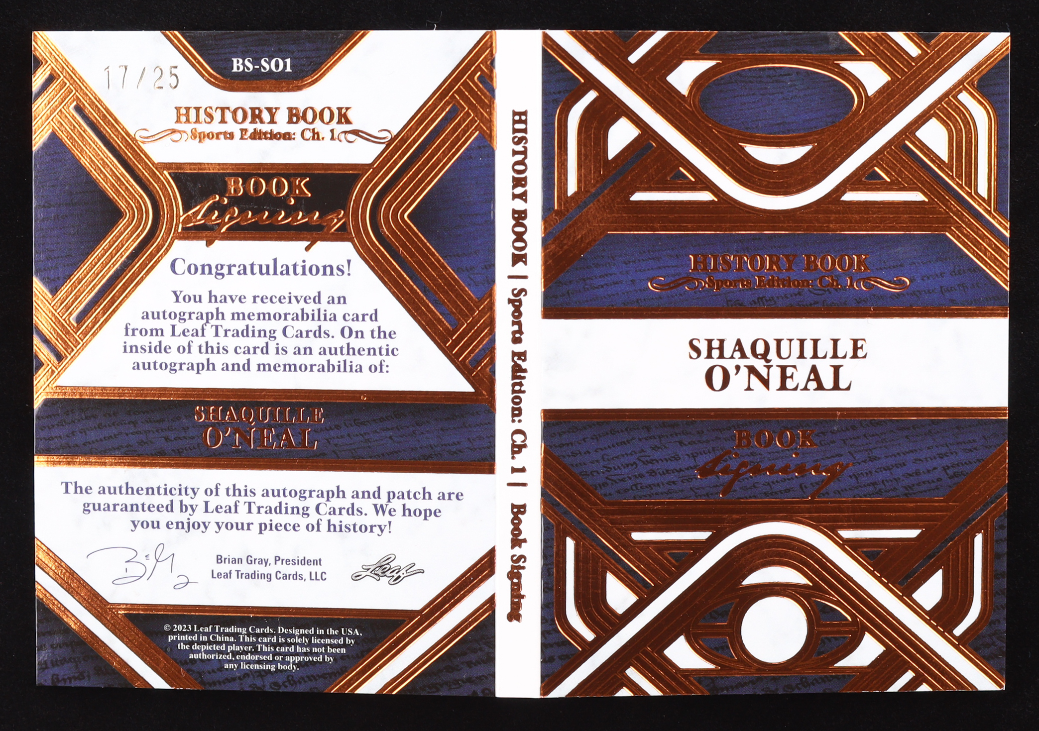 Shaquille O'Neal 2023 Leaf History Book Sports Edition Chapter One Book Signing Bronze #BSSO1 #17/25