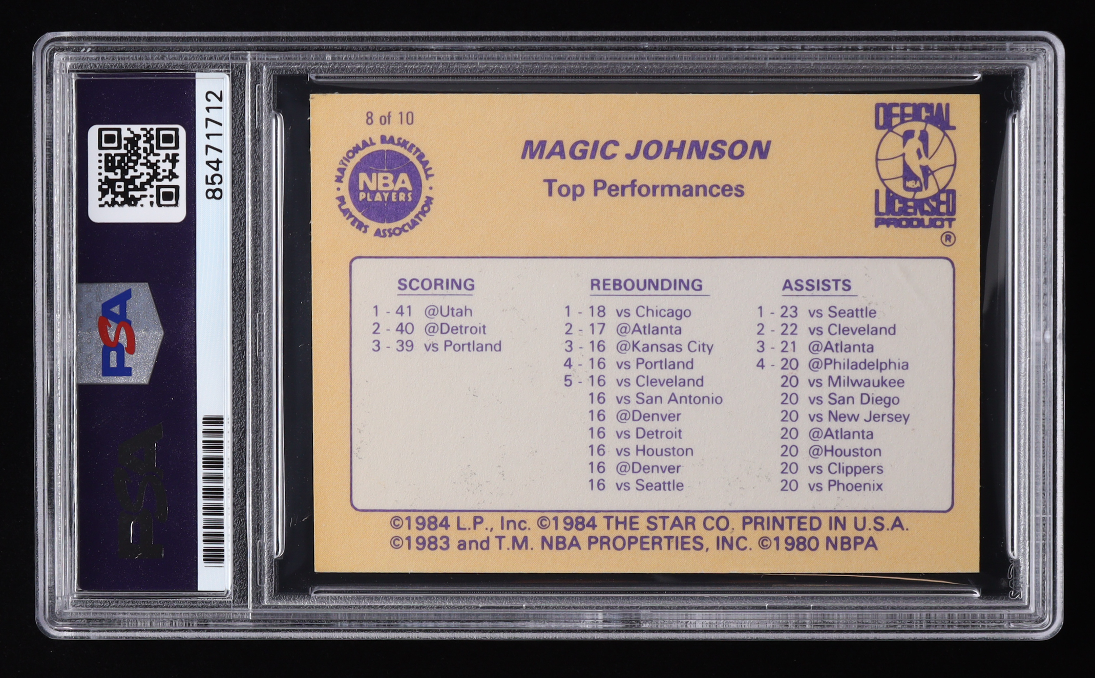 Magic Johnson Signed 1986 Star Magic Johnson #8 / Top Performance (PSA | Autograph Grade 10)