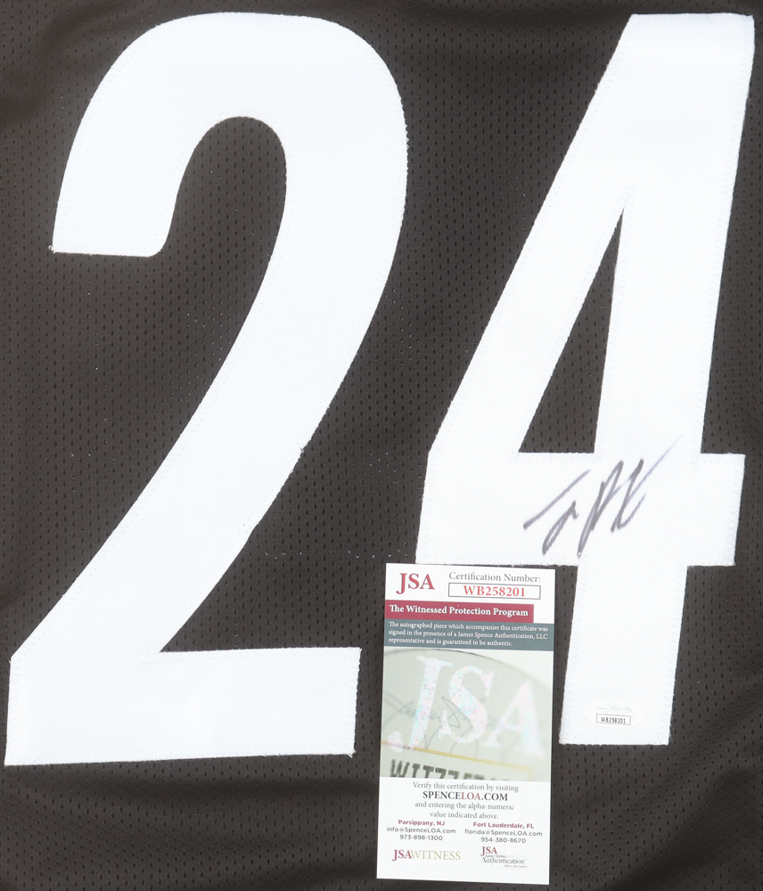 Custom jersey with everything sewn on, size XL. Hand-signed by Joey Porter Jr.