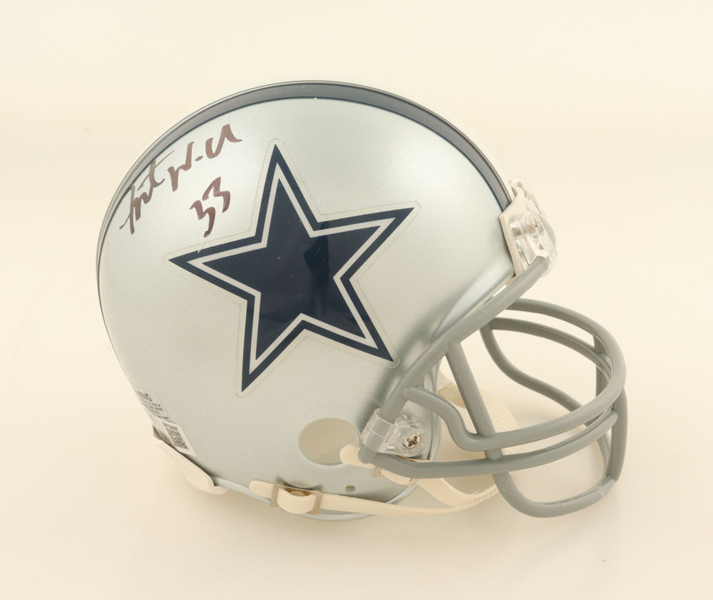 Riddell Dallas Cowboys mini helmet. Hand-signed by Javonte Williams.