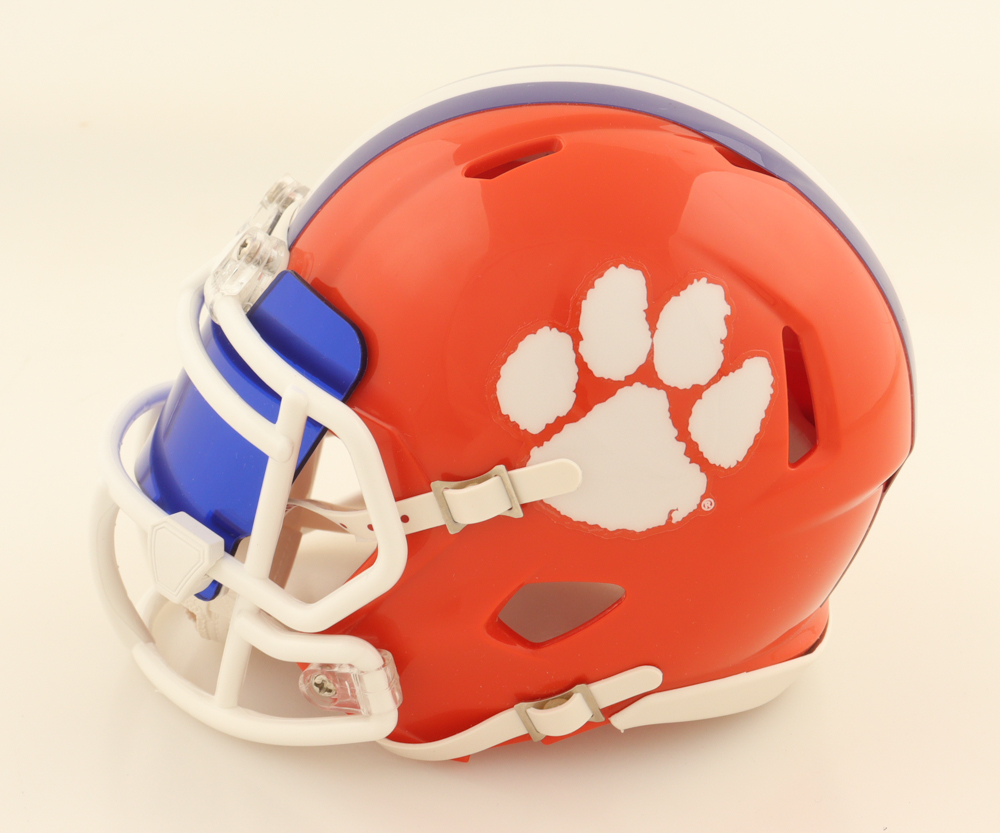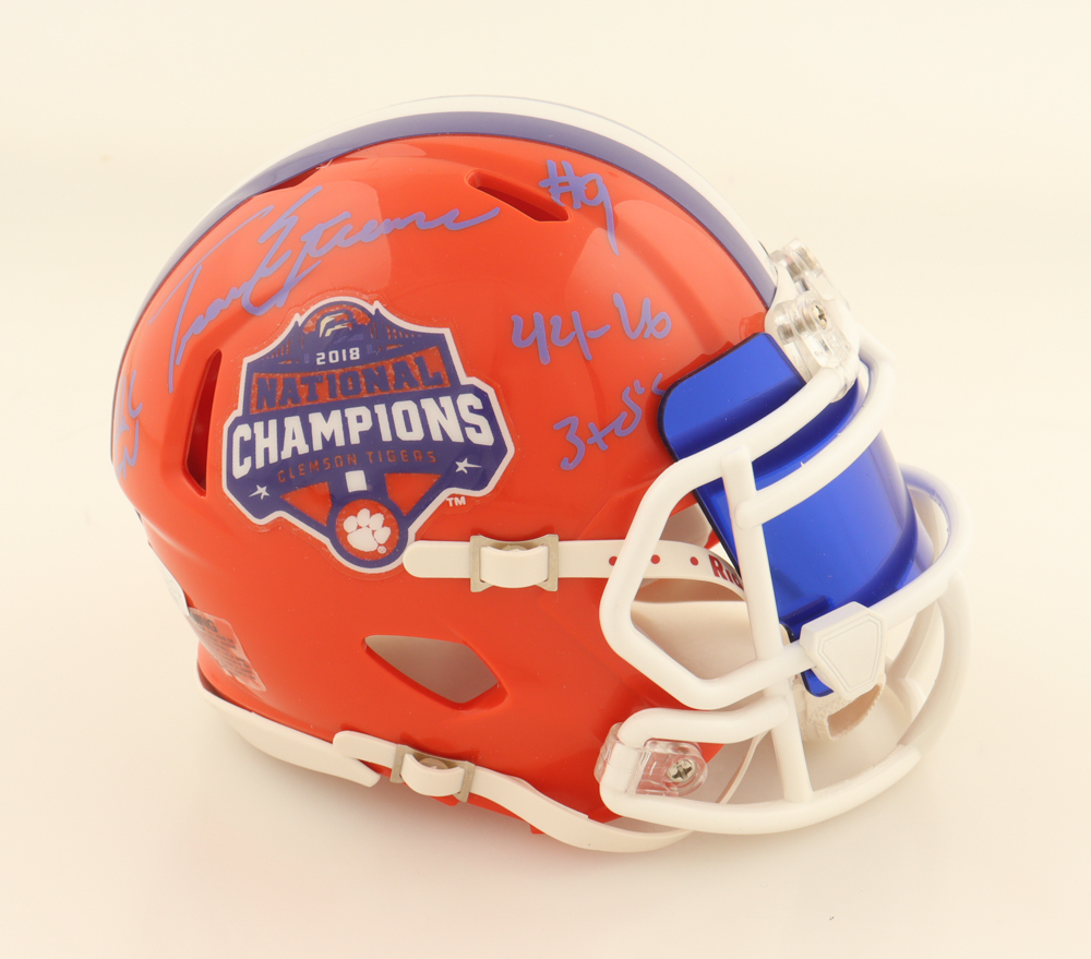 Riddell Clemson Tigers 2018 National Champions mini-helmet. Hand-signed and inscribed by Travis Etienne.