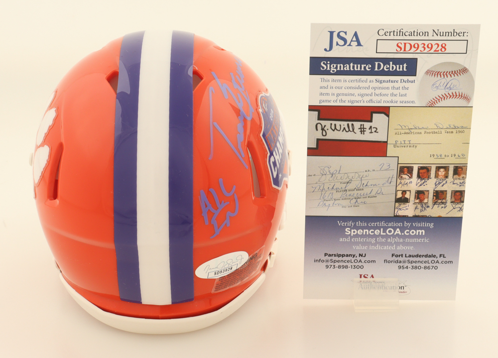 Travis Etienne Signed Clemson Tigers 2018 National Champions Mini-Helmet Inscribed "All In", "44-16" & "3 TDs" (JSA)
