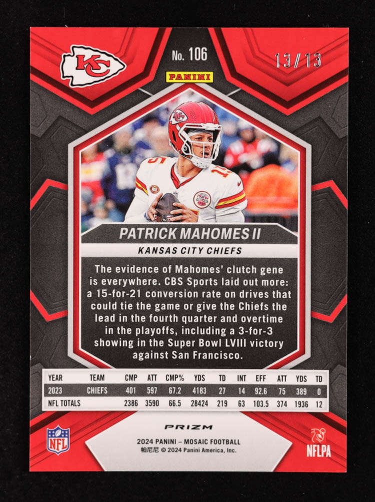Patrick Mahomes II 2024 Panini Mosaic Mosaic Green Swirl #106 #13/13