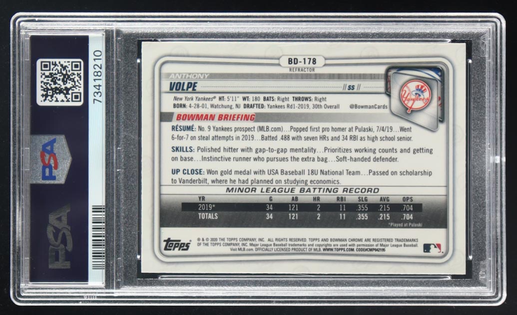 Anthony Volpe 2020 Bowman Chrome Draft Refractors #BD178 (PSA 10)