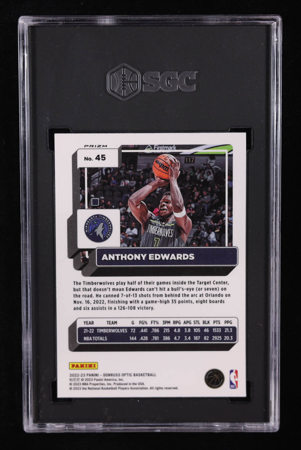Anthony Edwards 2022-23 Donruss Optic Purple #45 (SGC 10)