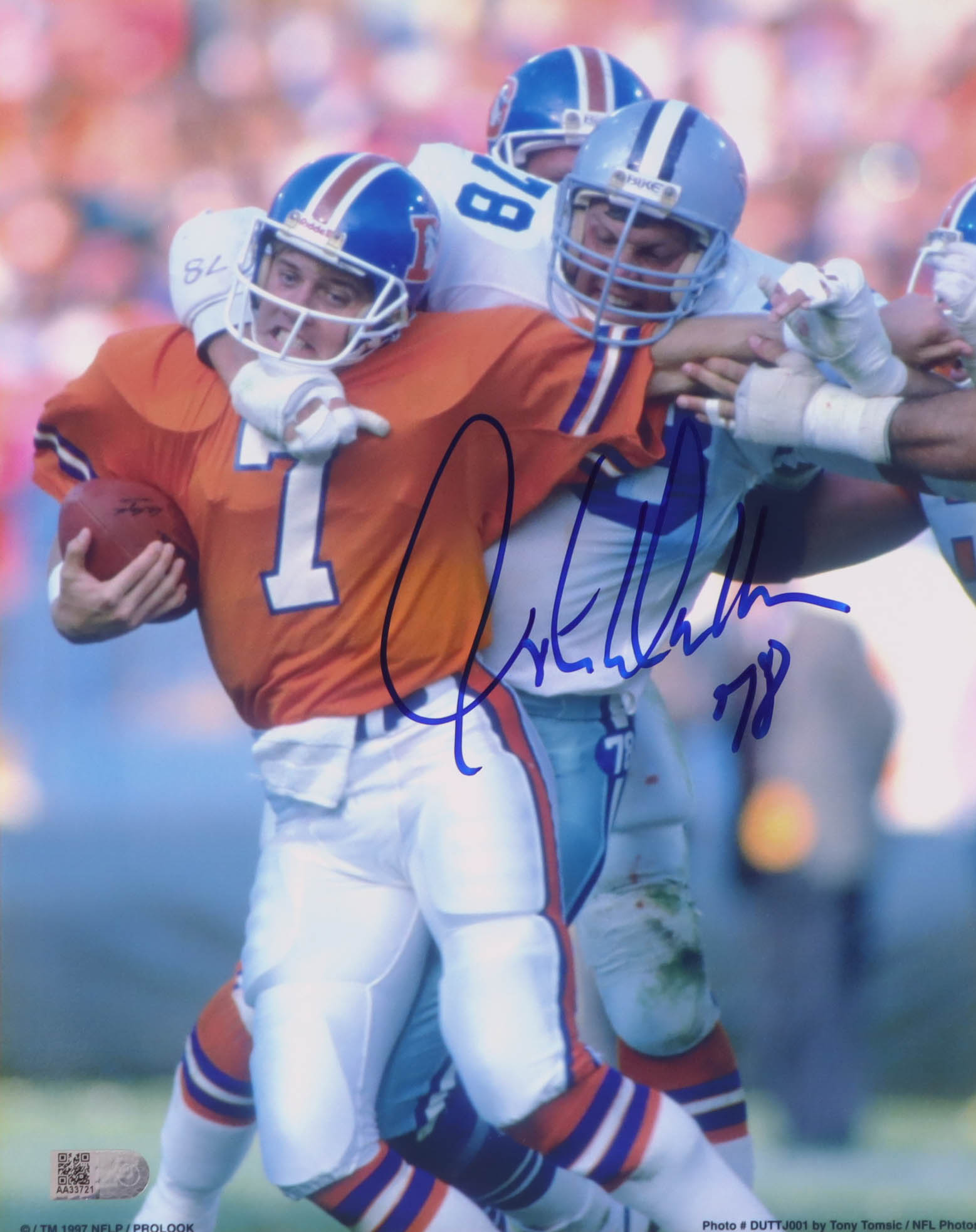 Photo measures 8" x 10" in size and has been hand-signed by John Dutton (Dallas Cowboys).