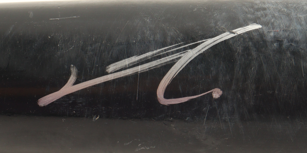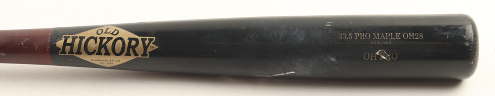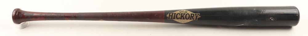 Old Hickory baseball bat. Hand-signed by Junior Caminero (Tampa Bay Rays). Please note, the bat has been game-used and cracked by an unknown player.