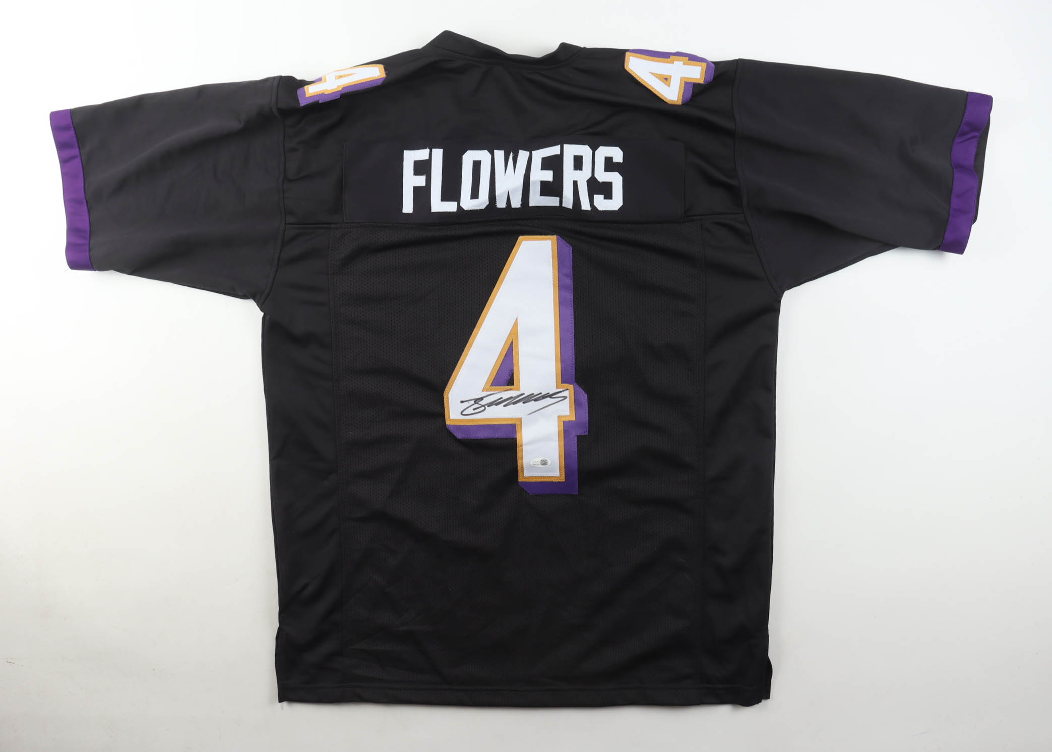 Custom jersey with everything sewn on, size XL. Hand-signed by Zay Flowers.