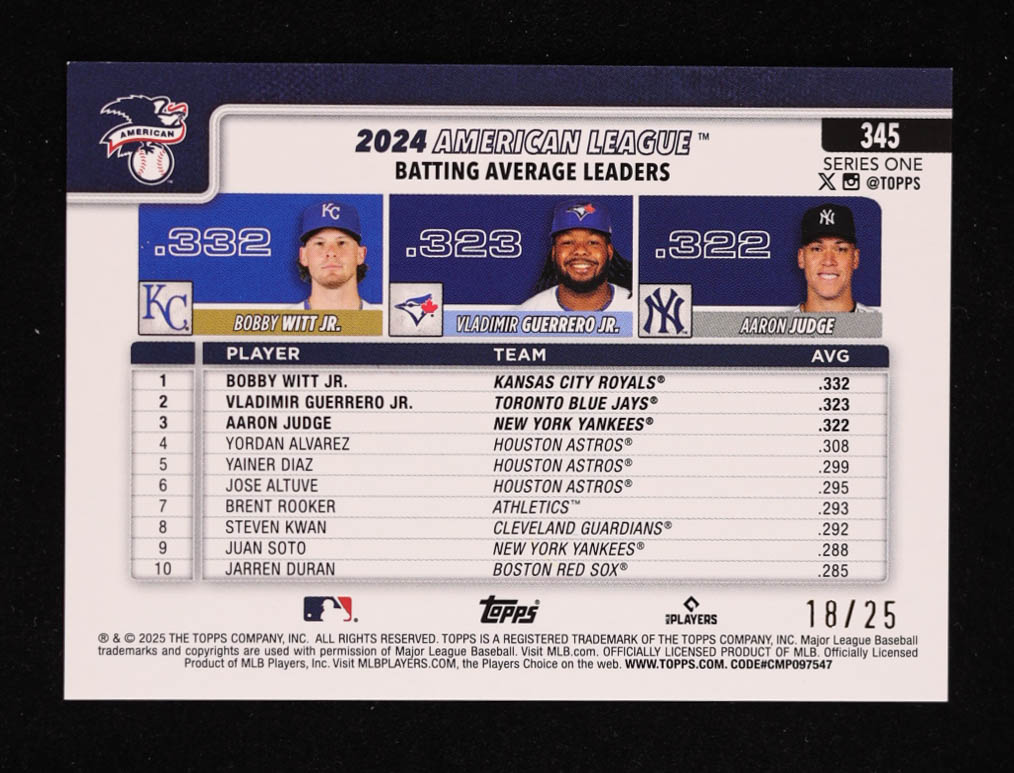 Vladimir Guerrero Jr. / Aaron Judge / Bobby Witt Jr. 2025 Topps Orange Holo Foil #345 #18/25