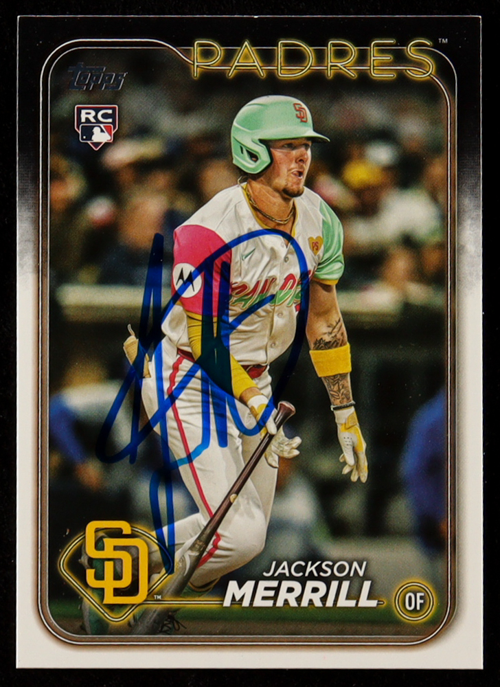Card has been hand-signed by Jackson Merrill (San Diego Padres). Please see photos for more details regarding the condition of the card.