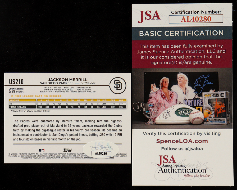 Jackson Merrill Signed 2024 Topps Chrome Update #US210 RC (JSA)