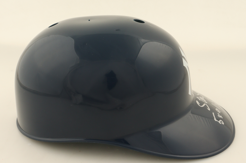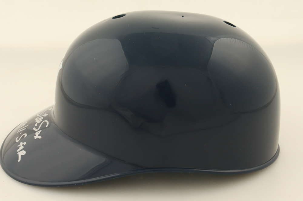 New York Yankees full-size replica plastic souvenir batting helmet. Hand-signed and inscribed by Steve Sax.