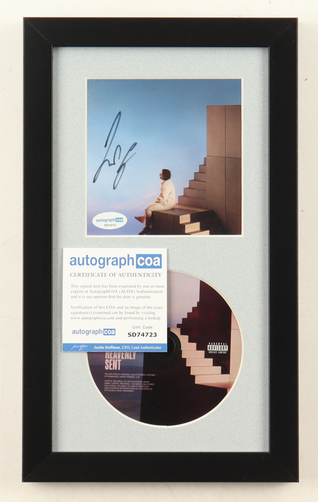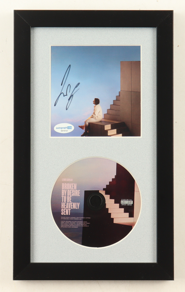 Custom frame measures approximately 8" x 13.5" in size and features a "Broken By Desire To Be Heavenly Sent" CD insert that has been hand-signed by Lewis Capaldi. The display also includes the disc as shown.