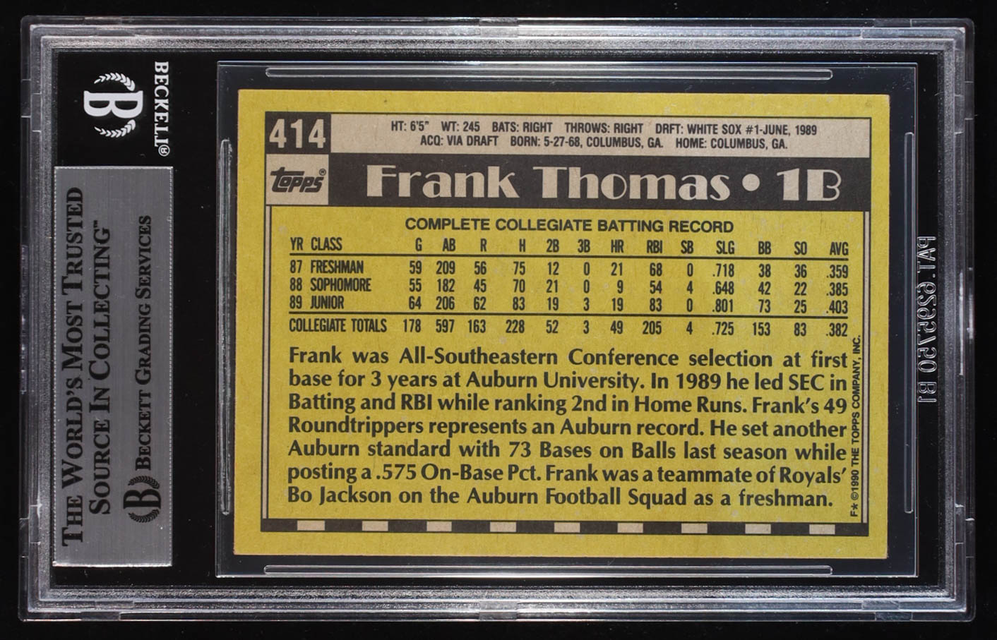 Frank Thomas Signed 1990 Topps #414 RC (Beckett Authentic)