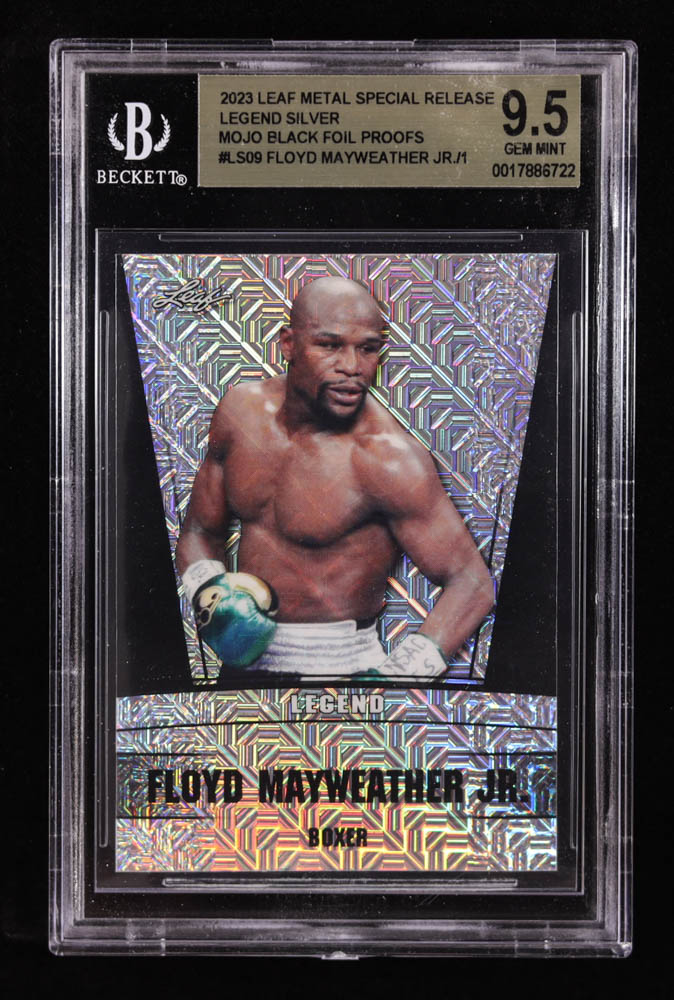 Floyd Mayweather Jr. 2023 Leaf Metal Special Release Legend Silver Mojo Black Foil Proofs #LS09 #1/1 (BGS 9.5)