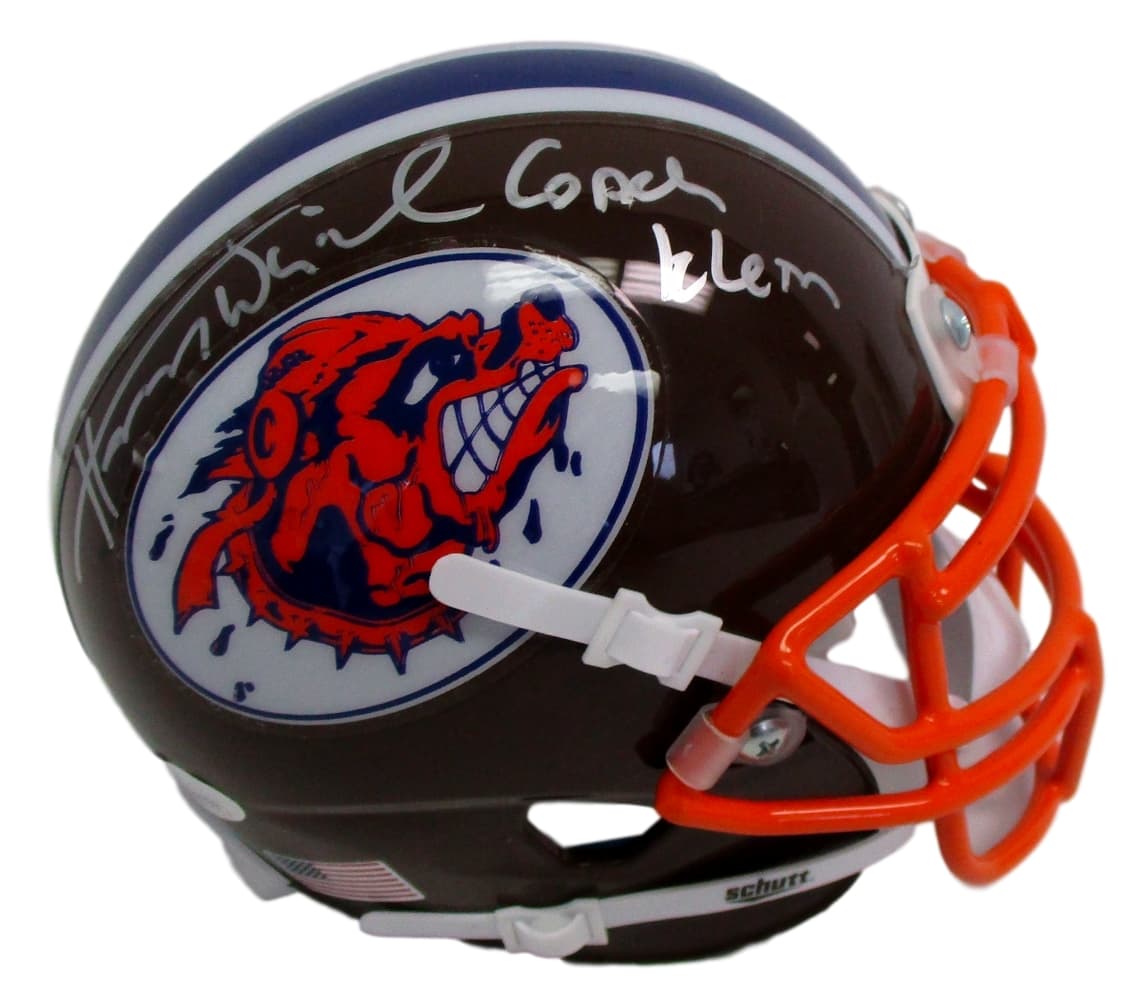 Schutt SCLSU Mud Dogs mini-helmet has been hand-signed and inscribed in silver paint pen by Henry Winkler (The Waterboy).