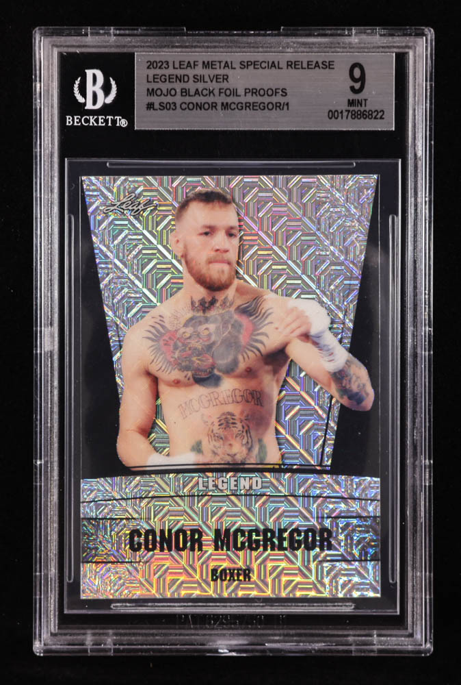 Conor McGregor 2023 Leaf Metal Special Release Legend Silver Mojo Black Foil Proofs #LS03 #1/1 (BGS 9)