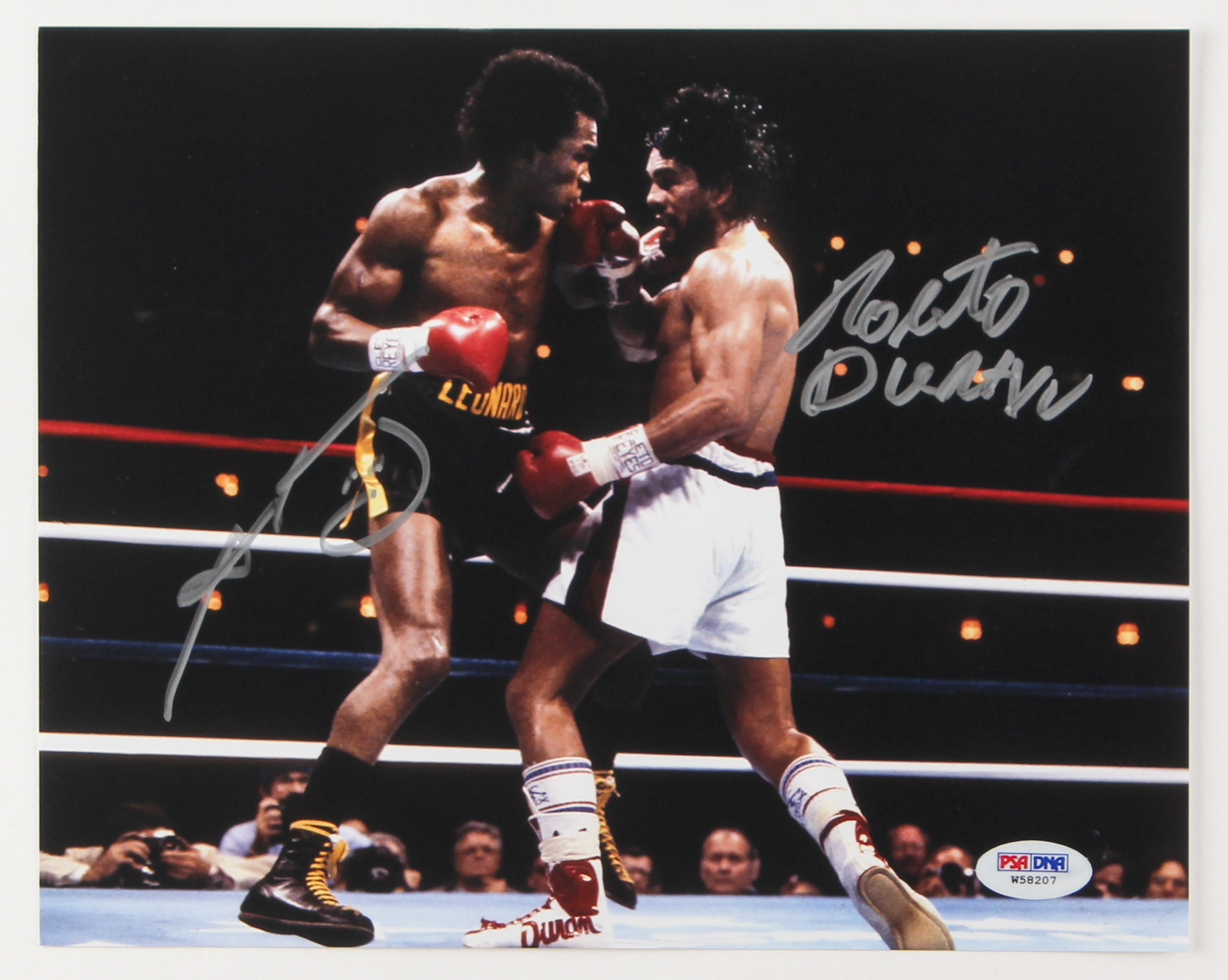 Roberto Duran & Sugar Ray Leonard Signed Boxing 8x10 Photo (PSA COA)