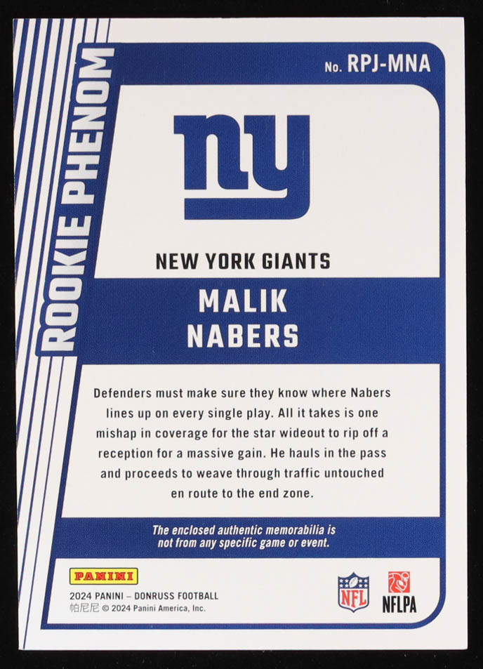 Malik Nabers 2024 Donruss Rookie Phenom Jerseys #29 RC