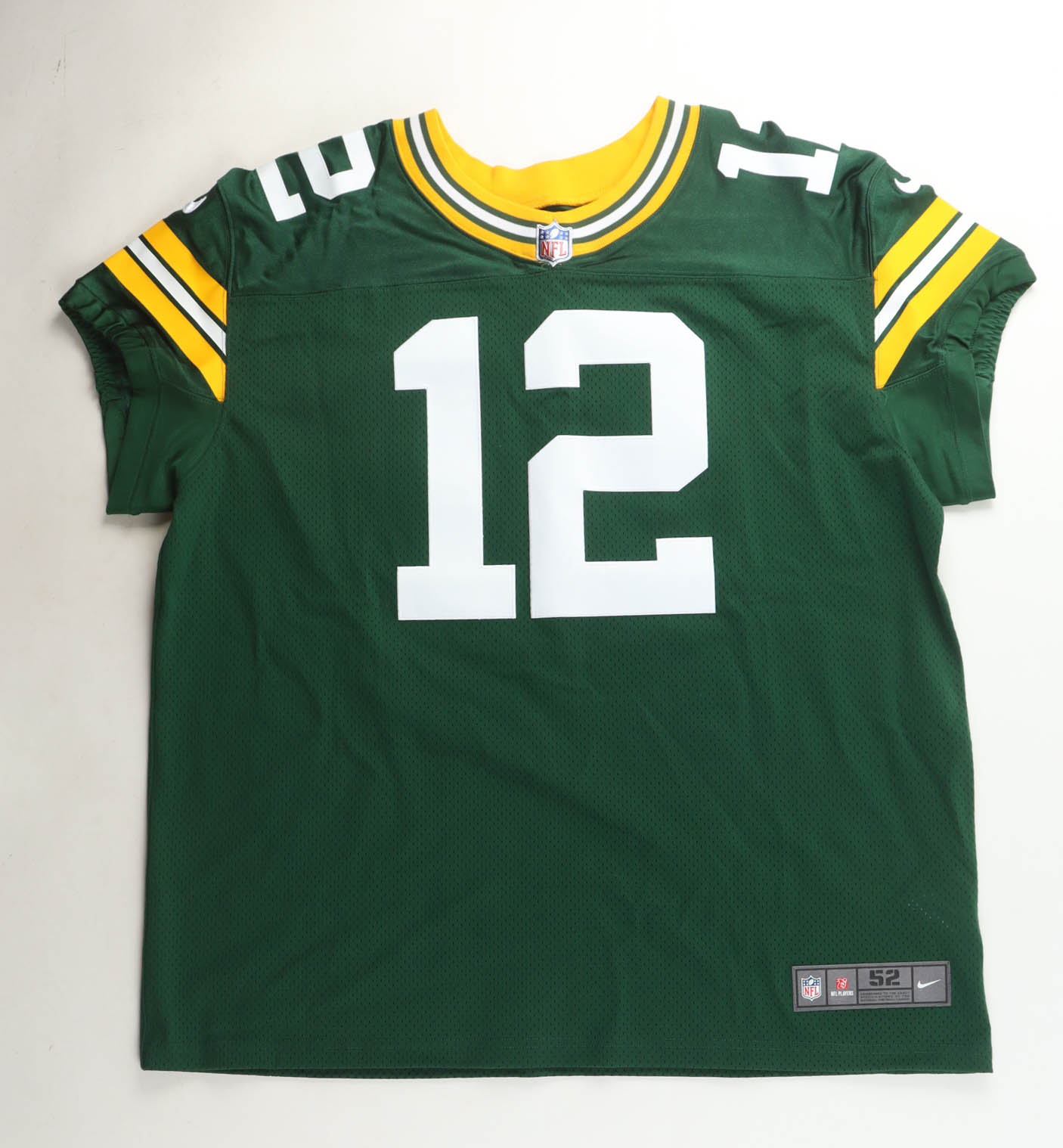Nike jersey with everything sewn on, size 52. Hand-signed by Aaron Rodgers (Green Bay Packers).