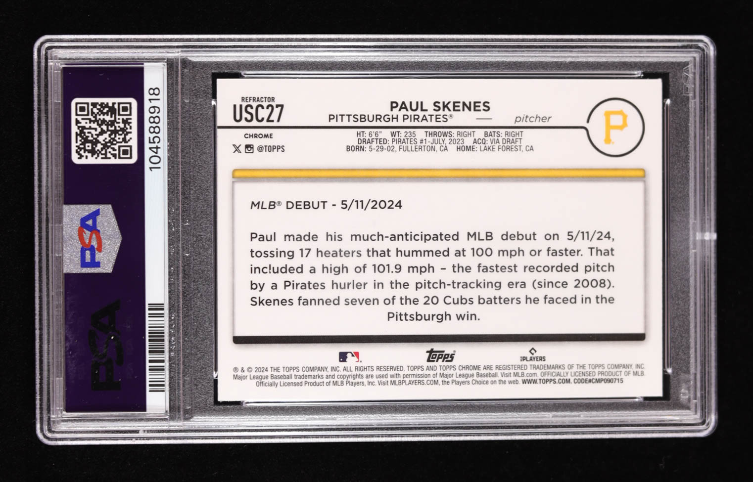 Paul Skenes 2024 Topps Chrome Update Refractors #USC27 RC (PSA 10)