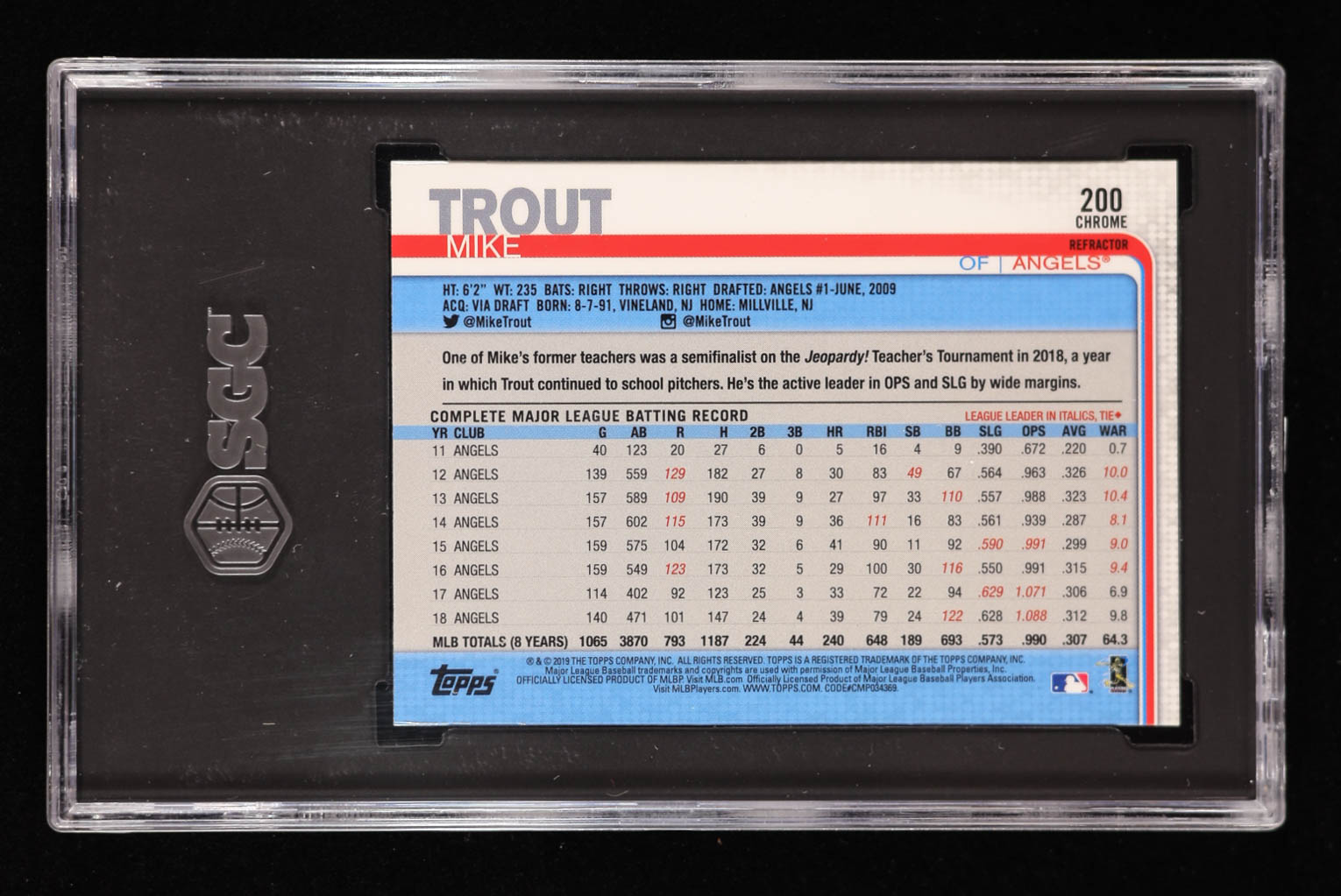 Mike Trout 2019 Topps Chrome Pink Refractors #200 (SGC 9.5)