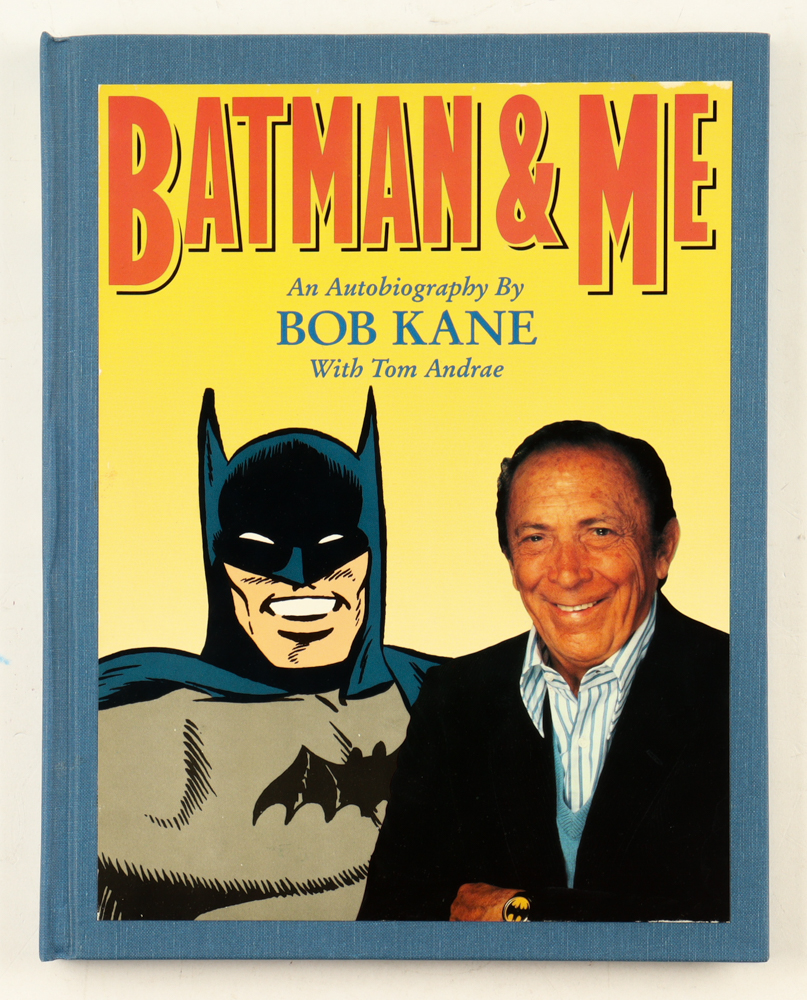 "Batman & Me" Hardcover Book. Hand-signed on the title page by Bob Kane (D.1998, Co-Creator). This book is limited edition and has been hand-numbered #492/1000. The book also includes hard cover sleeve.