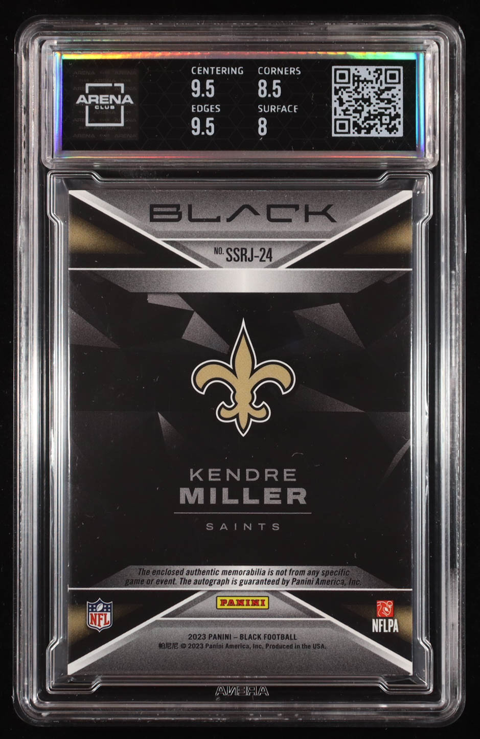 Card has been hand signed by Kendre Miller and graded (Arena Club) 8.5. Please see photos for more details regarding the condition of the card (New Orleans Saints).