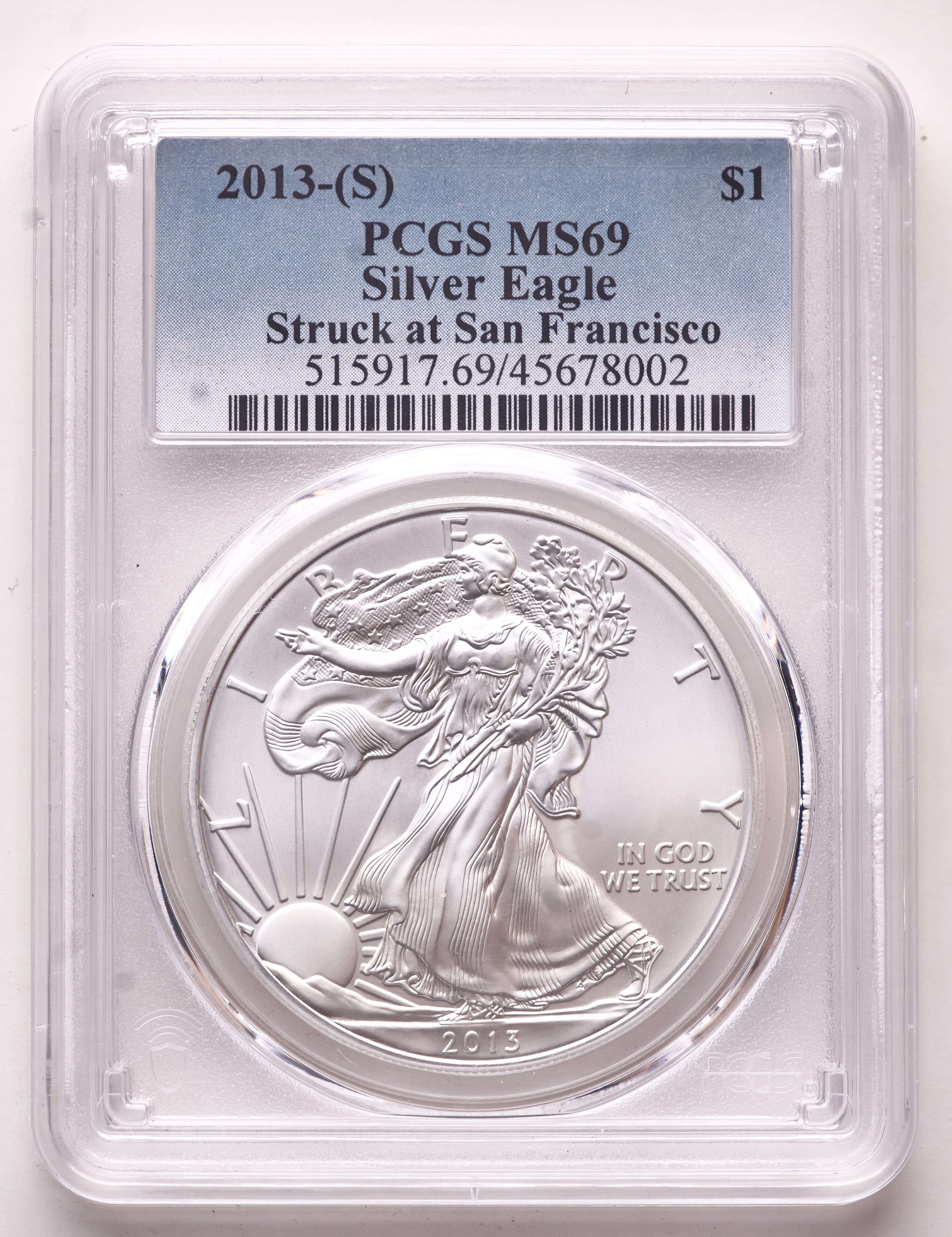 2013 American Silver Eagle $1 One Dollar Coin - Struck At San Francisco (PCGS MS69)