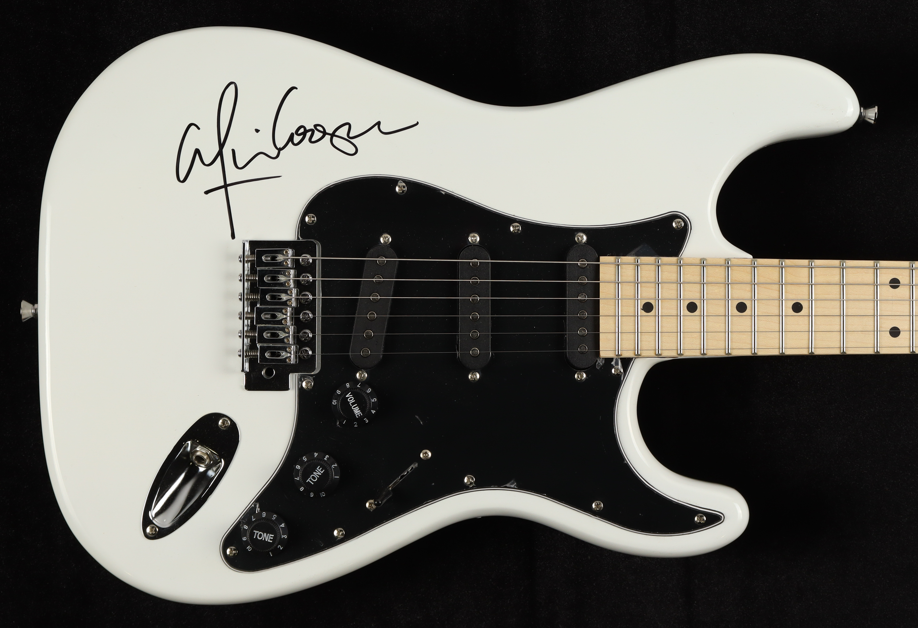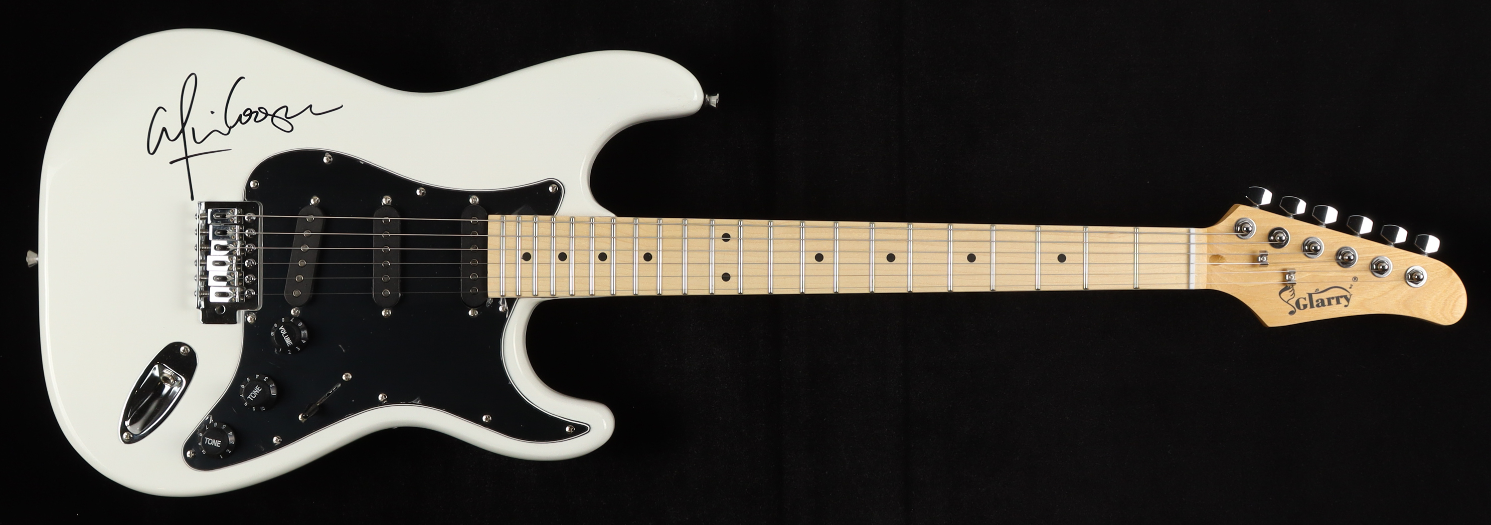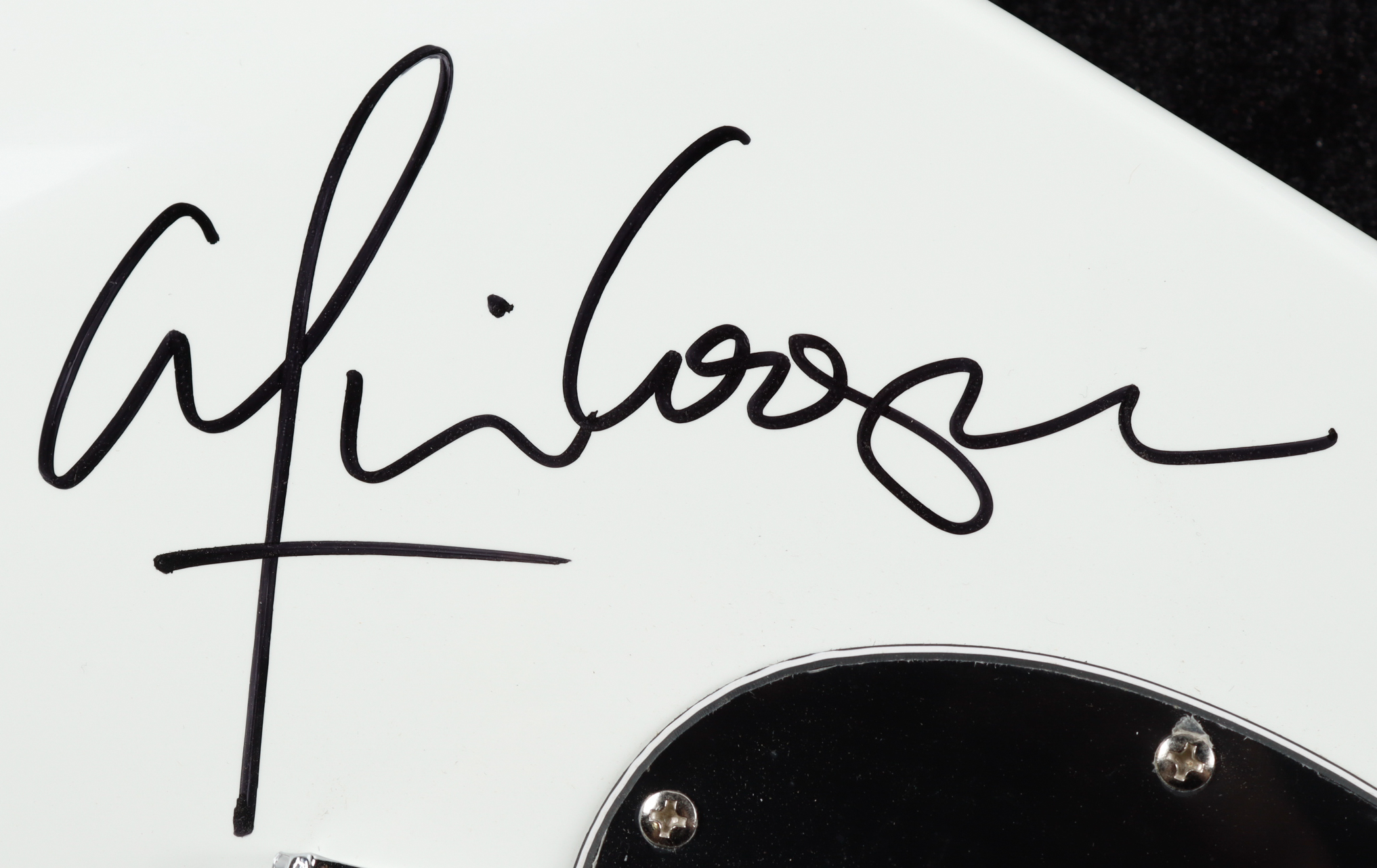 Full-size electric guitar measures approximately 39" in length and is hand-signed on the body by Alice Cooper.