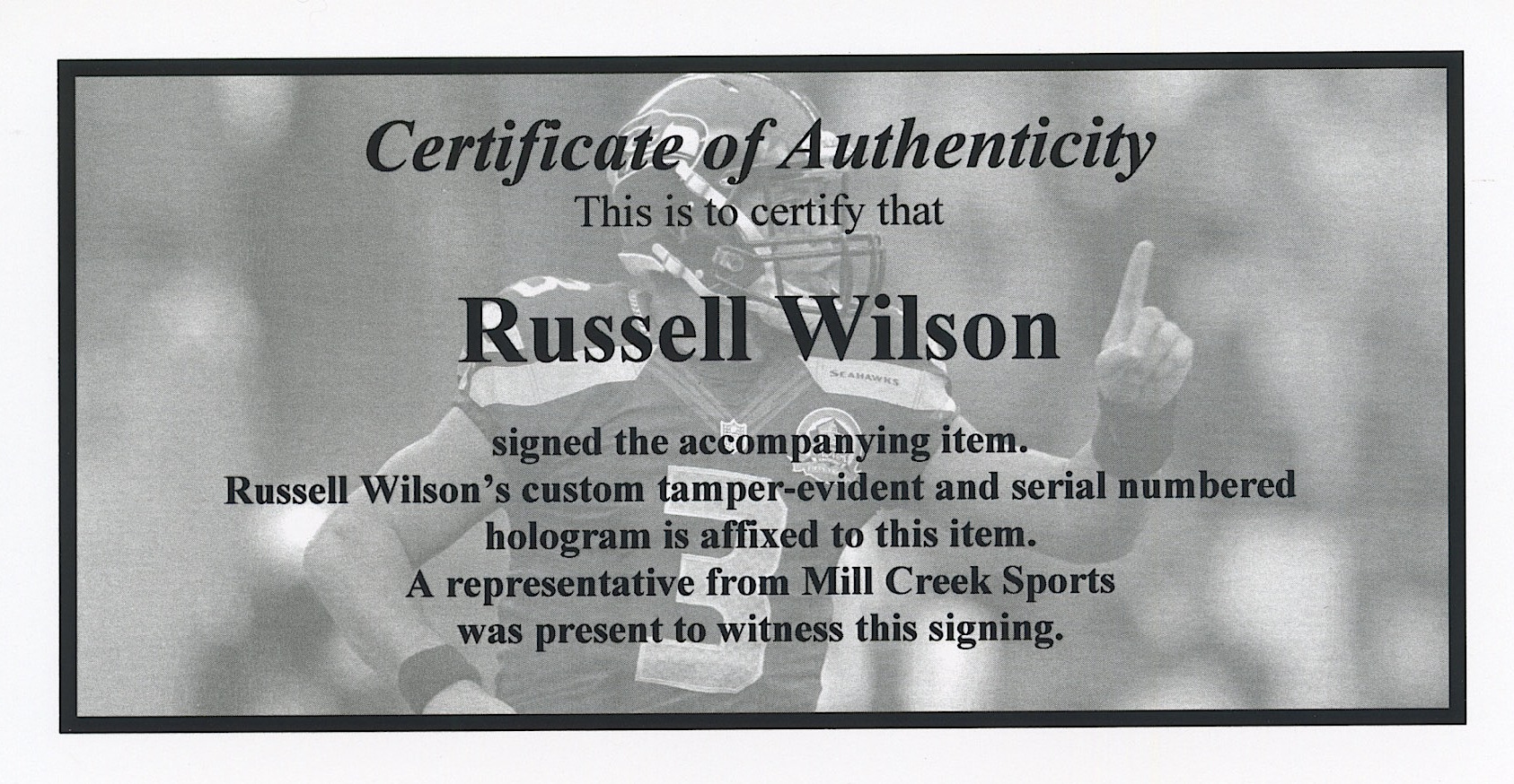 Authentication: Russell Wilson Hologram & COA