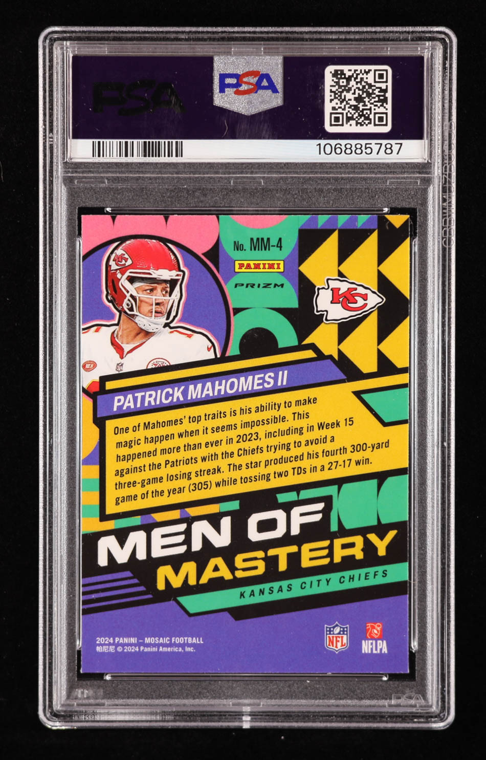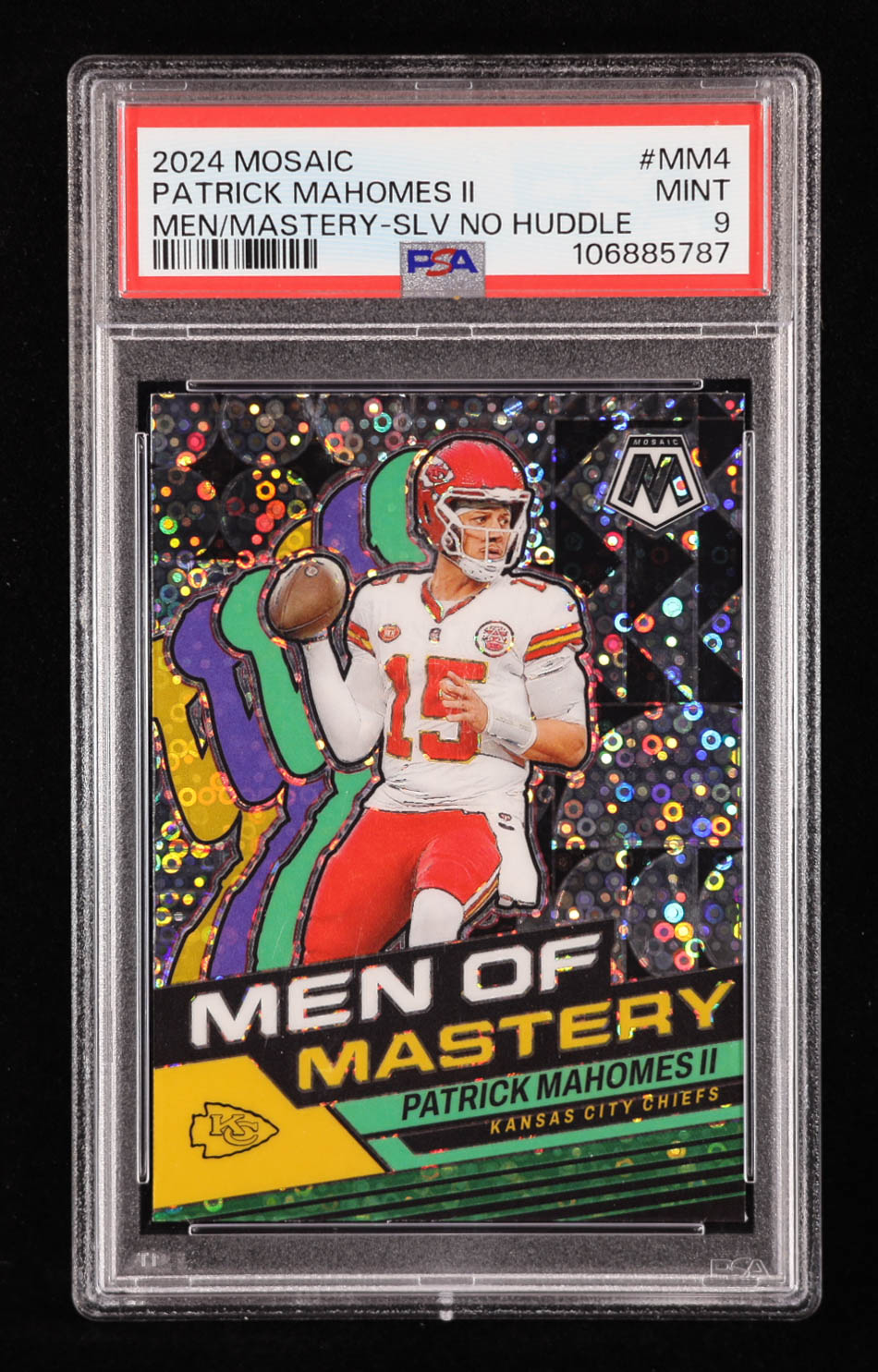 Patrick Mahomes II 2024 Panini Mosaic Men of Mastery No Huddle Silver #4 (PSA 9)