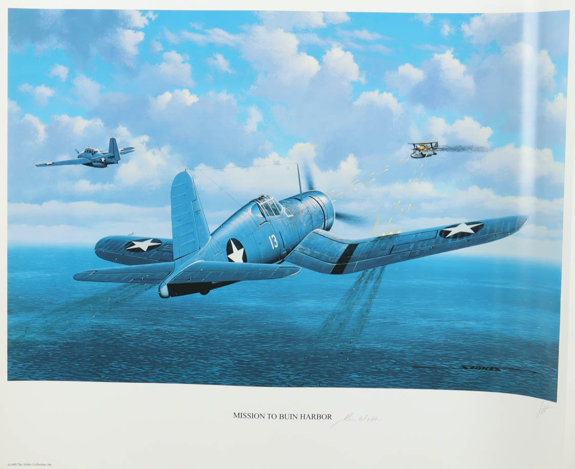 Kenneth Walsh Signed 'Mission to Buin Harbor' 18x22 Lithograph WWII USMC Ace 21 Victories (AIV)