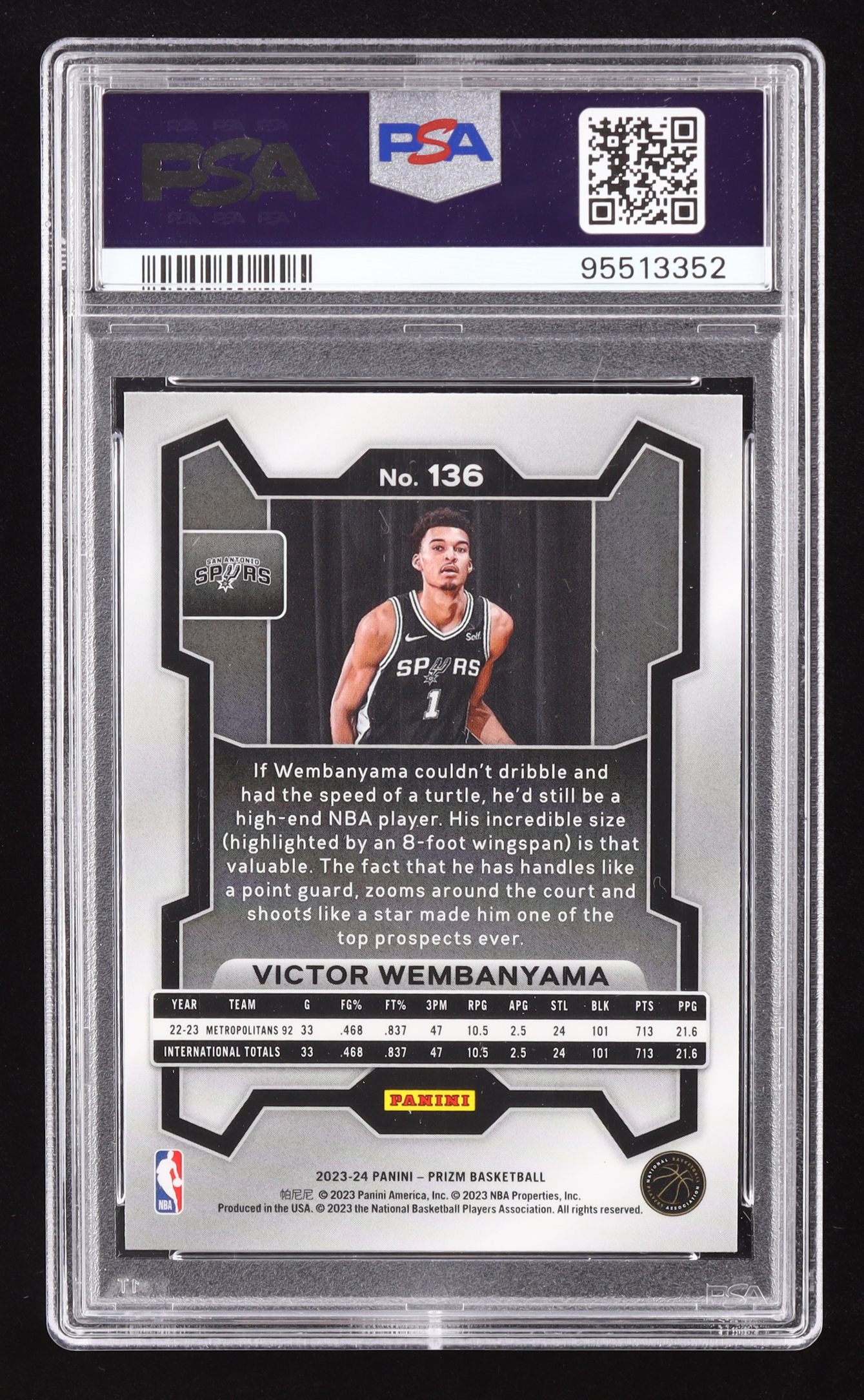 Victor Wembanyama 2023-24 Panini Prizm #136 RC (PSA 10)