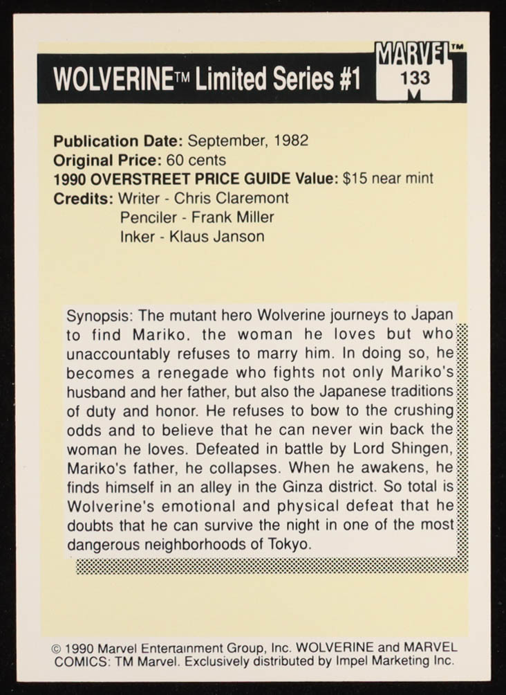 Wolverine 1990 Impel Marvel Universe I #133 Limited Series #1
