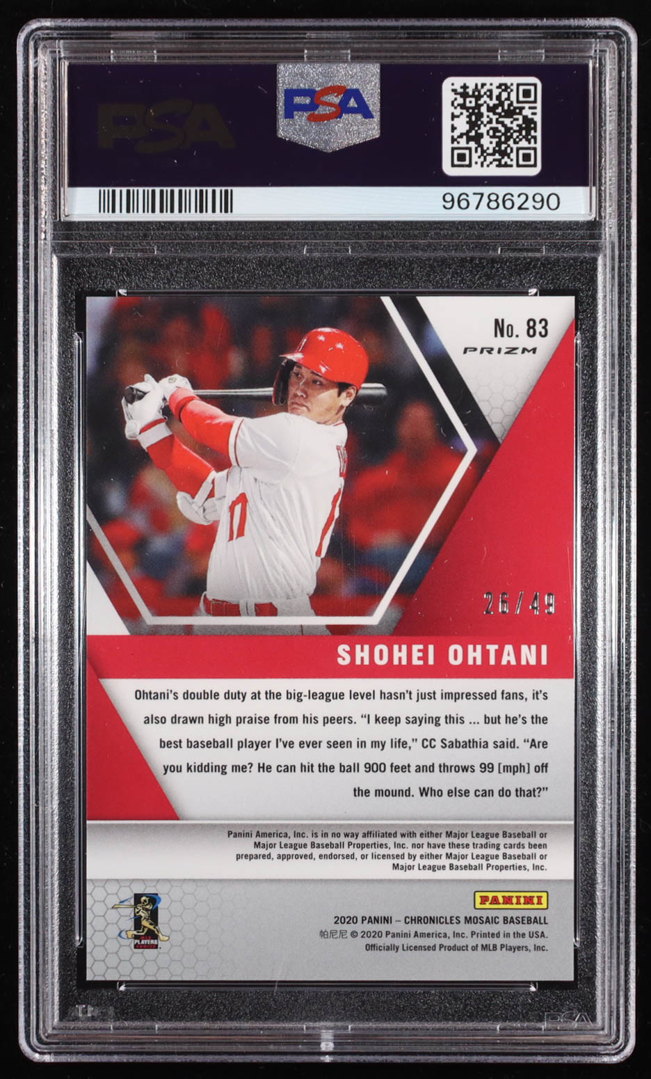 Shohei Ohtani 2020 Panini Mosaic Purple #83 #26/49 (PSA 9)