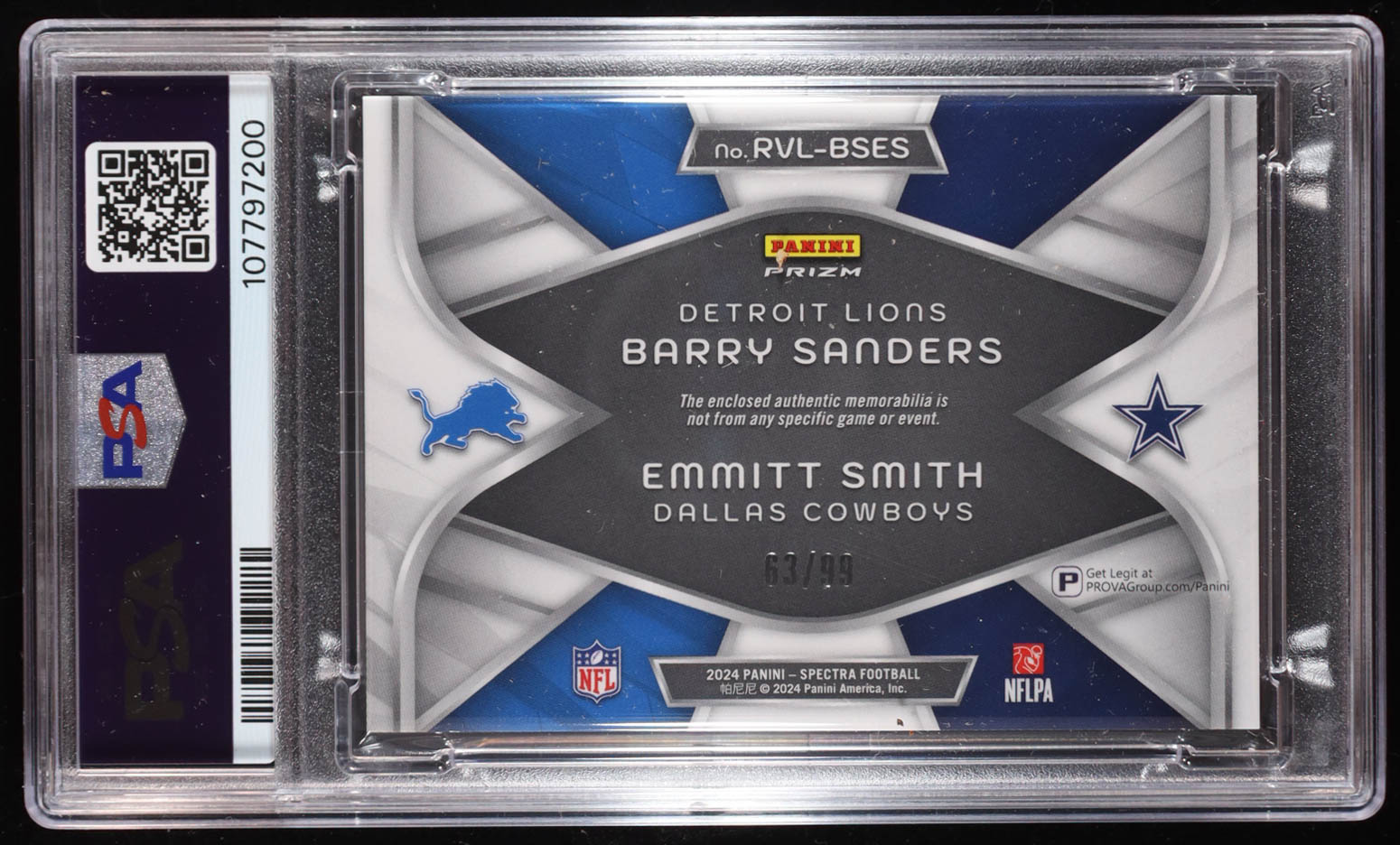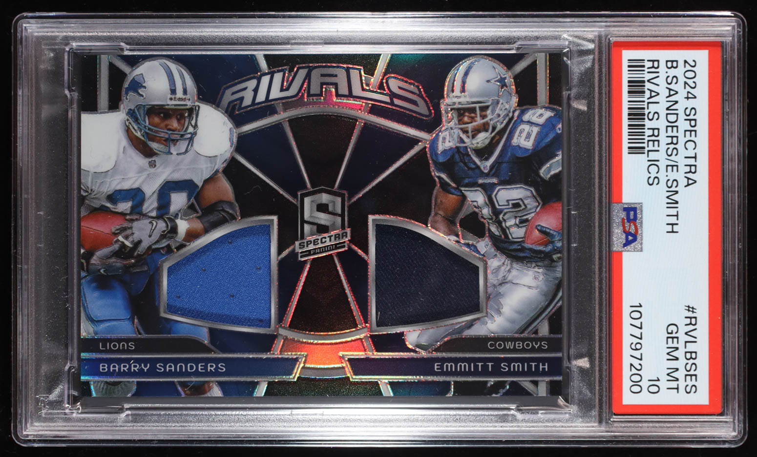 Barry Sanders / Emmitt Smith 2024 Panini Spectra Rivals Materials #RVLBSES #63/99 (PSA 10)