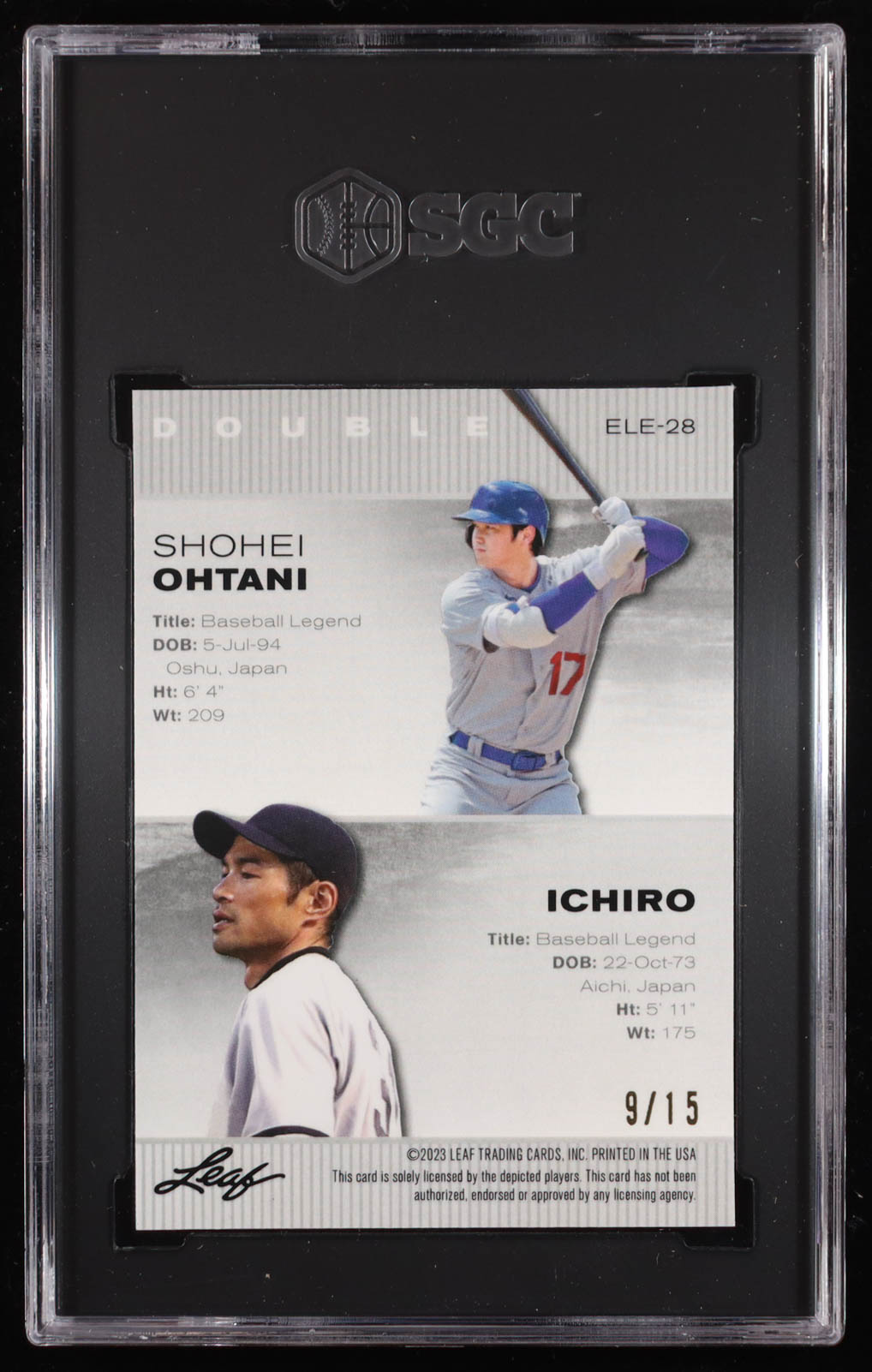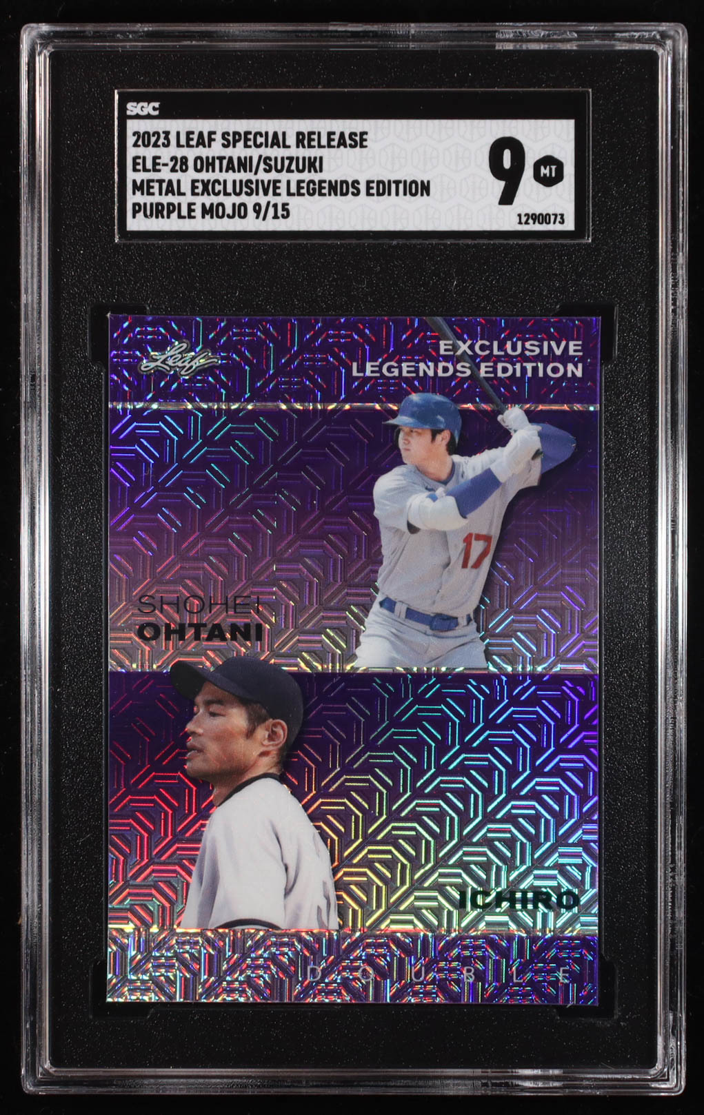 Shohei Ohtani / Ichiro 2023 Leaf Special Release Exclusive Legends Edition Purple Mojo #ELE28 #9/15 (SGC 9)