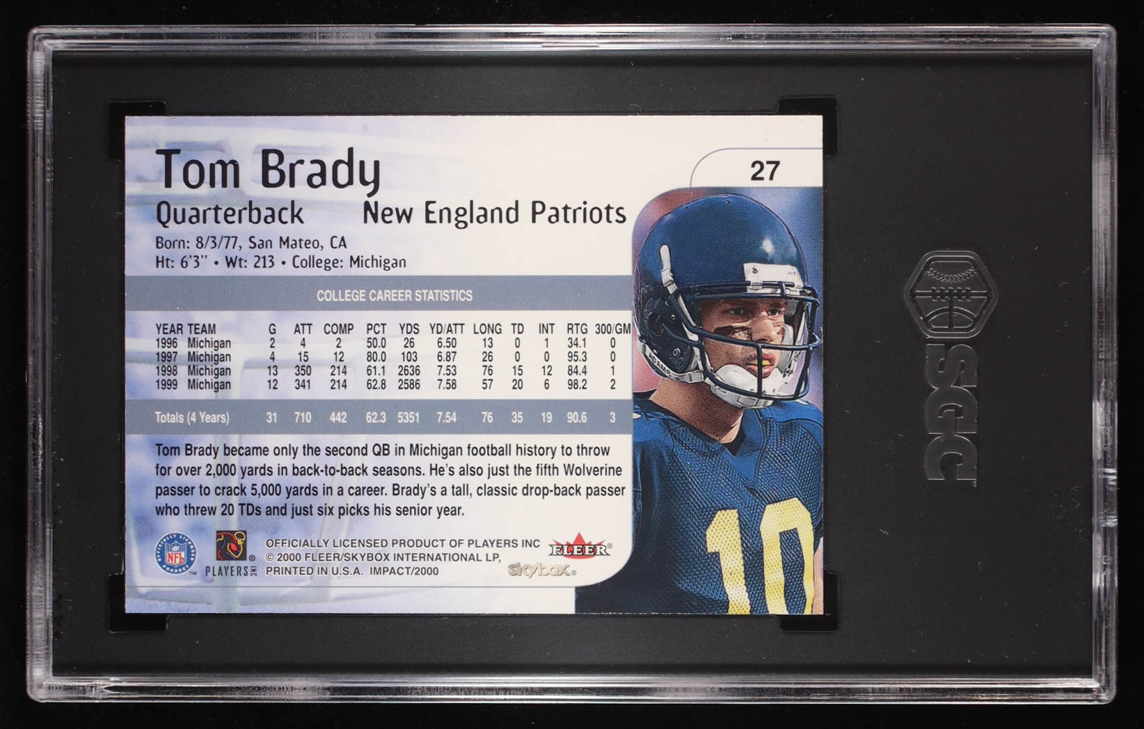 Tom Brady 2000 Impact #27 RC (SGC 8)